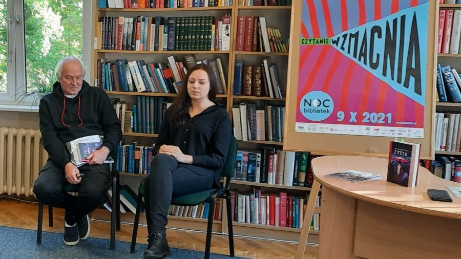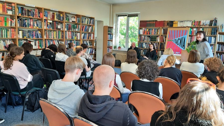 Zaczęło się od spotkania autorskiego z Martą Sobiecką, autorką zbioru opowiadań „Algorytm życia“. W spotkaniu, które poprowadził Tadeusz Krajewski, dyrektor Biblioteki Literatury Fantastycznej im. Jerzego Grundkowskiego, wzięło udział blisko 70 uczniów i nauczycieli.