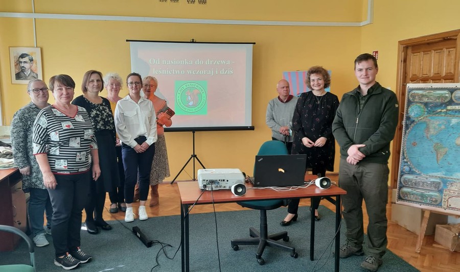 Nawiązując do hasła „Czytanie wzmacnia”, odbyło się również spotkanie „Las wzmacnia – o wydawnictwach i działalności edukacyjnej Lasów Państwowych”. W Bibliotece gościł leśnik, Marcin Koziczak, podleśniczy z leśnictwa Zielonka nieopodal Bydgoszczy. Zaprezentował materiały edukacyjne dotyczące urządzania lasu, ochrony różnorodnych siedlisk i upraw oraz turystyki i rekreacji na terenach leśnych. Przyniósł ze sobą również estetyczne i wartościowe wydawnictwa Lasów Państwowych – czasopisma, broszury, książki, z których część zasiliła zbiory Biblioteki.