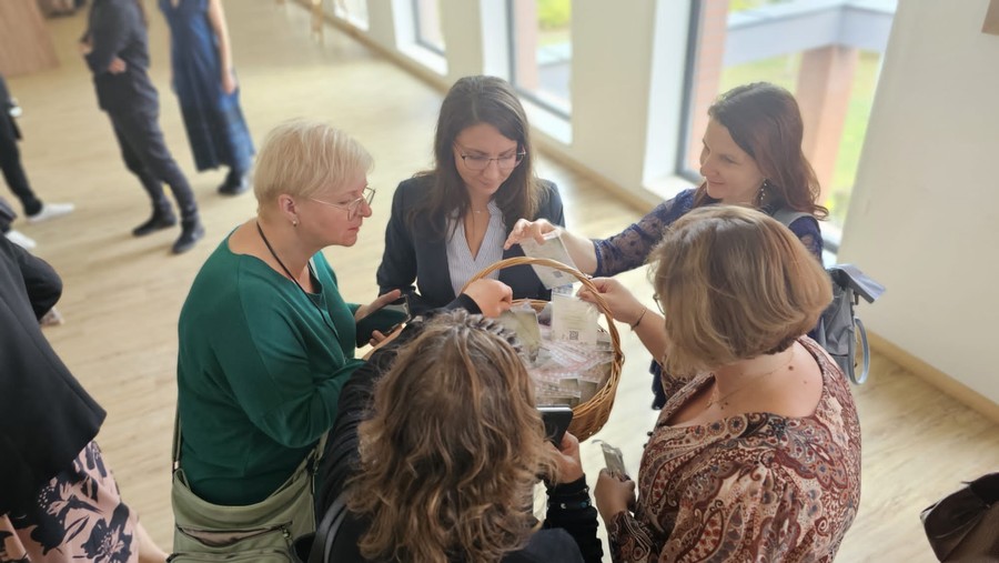 Wszyscy uczestnicy konferencji otrzymali upominki w postaci breloczków z okazji zbliżającego się Dnia Edukacji Narodowej. Breloczki te wykonane były przez uczniów naszej szkoły w ramach realizacji projektu edukacyjnego pt. „ Weź ze sobą breloczek mocy”. Do breloczków dołączony został kod QR, po którego zeskanowaniu każdy otrzymał dedykowany sobie cytat.
