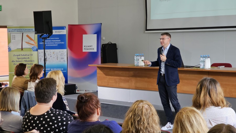 7 października 2023 roku w Bibliotece UKW odbyła się XIV Ogólnopolska Konferencja Szkoleniowa dla nauczycieli, pedagogów i psychologów pt.: ”Dorastanie bez lęku i presji”, zorganizowana przez Zespół Szkół nr 33 Specjalnych dla Dzieci i Młodzieży Przewlekle Chorej w Bydgoszczy we współpracy z Wydziałem Pedagogiki Uniwersytetu Kazimierza Wielkiego oraz Kujawsko-Pomorskim Centrum Edukacji Nauczycieli w Bydgoszczy. Przygotowując tematykę konferencji chcieliśmy wyjść naprzeciw problemom, z którymi borykać muszą się uczniowie i nauczyciele w dzisiejszym świecie oraz podjąć próbę zdefiniowania tych problemów, poznania mechanizmów zakłócających proces dorastania, a także możliwości i sposobów, by stawić im czoła.