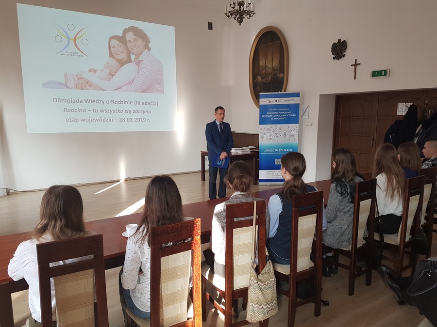 28 lutego 2019 roku w Kujawsko-Pomorskim Centrum Edukacji Nauczycieli w Bydgoszczy odbył się etap wojewódzki Olimpiady Wiedzy o Rodzinie (III edycja), która w roku szkolnym 2018/2019 przebiegała pod hasłem Rodzina – tu wszystko się zaczyna. Organizatorem ogólnopolskiej olimpiady jest Wydział Teologii Uniwersytetu Warmińsko-Mazurskiego (Kierunek kształcenia – Nauki o Rodzinie) w Olsztynie. Przedsięwzięcie jest współfinansowane przez Ministerstwo Edukacji Narodowej. Celem olimpiady jest promowanie wartości małżeńskich i rodzinnych, kształtowanie postaw dobrego i refleksyjnego małżonka oraz podnoszenie świadomości i wiedzy prawnej dotyczącej małżeństwa i rodziny.