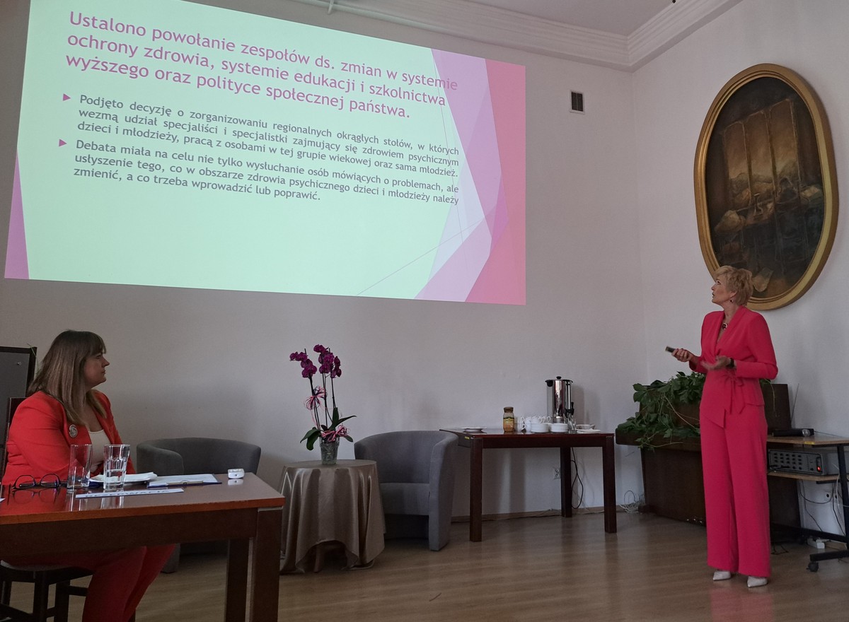 Pierwsza prelegentka Hanna Jurek, dyrektor Poradni Psychologiczno-Pedagogicznej w Świeciu, mówiła o potrzebach uczniów i postulatach skonstruowanych podczas Okrągłego Stołu -Wokół Zdrowia Psychicznego Dzieci i Młodzieży zorganizowanego we wrześniu w Świeciu.