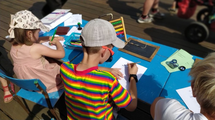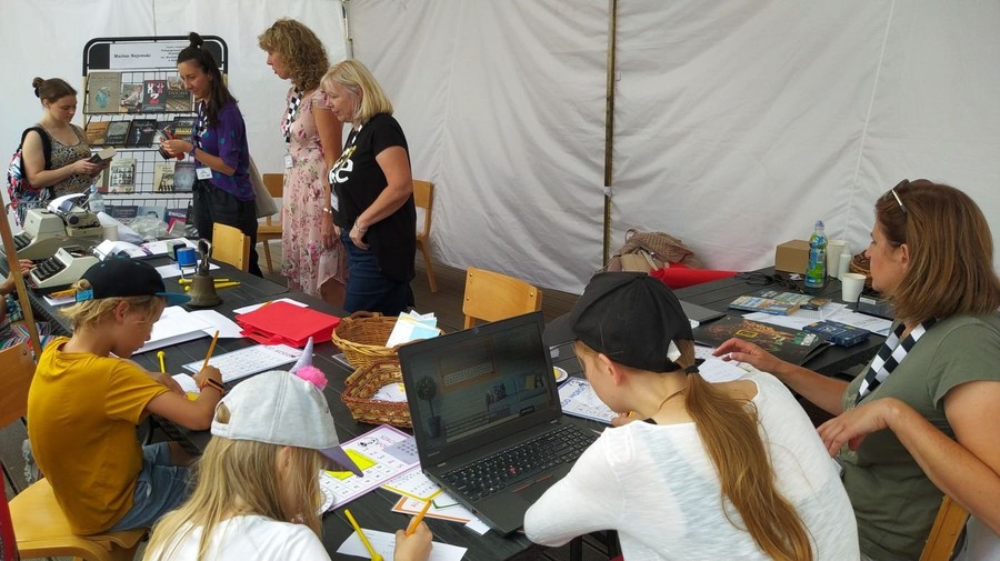 W punkcie przygotowanym przez Pedagogiczną Bibliotekę Wojewódzką w Bydgoszczy wraz z Kujawsko-Pomorskim Centrum Dziedzictwa Oświaty odwiedzający zasiedli w ławkach z czasów szkolnych i spróbowali swoich sił w kaligrafowaniu piórem i atramentem. Na chętnych czekały też inne eksponaty z Muzeum Oświaty, m.in. tabliczki z rysikami, maszyny do pisania. Nie zabrakło zagadek, szyfrów i kodów. Ponad osiemset osób, głównie dzieci, zmierzyło się z szyframi Cezara, Polibiusza, deszyfrowało informacje na symulatorach Enigmy lub weszło do wirtualnego escape roomu pt. „Szkoła szyfrów“.