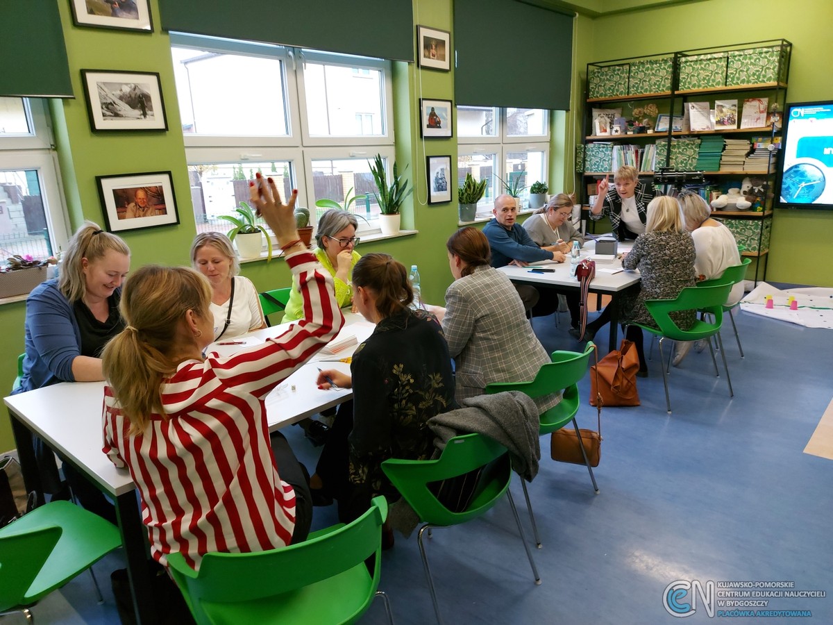 W trakcie trzech sesji warsztatowych matematycy pracowali w zespołach, wykorzystując metody aktywizujące, np. naukę przez działanie, escape room, myślącą klasę pod kierunkiem nauczycieli konsultantów i doradców metodycznych KPCEN w Bydgoszczy: Kamili Bagniewskiej, Grażyny Szczepańczyk, Ewy Grzanki oraz Justyny Prud.