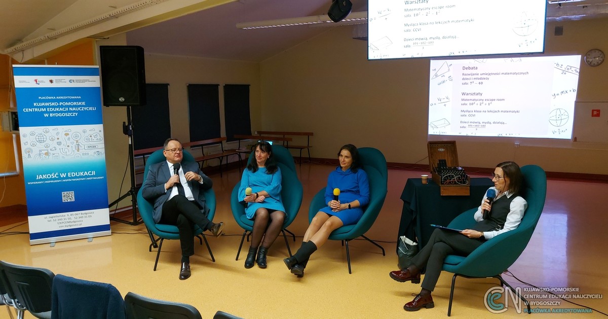 W pierwszej części konferencji odbyły się krótkie wykłady, podczas których prelegenci: dr Agnieszka Krause, UMK i IV LO w Toruniu, Elżbieta Wilińska, PZSM w Bydgoszczy, Grażyna Szczepańczyk, KPCEN w Bydgoszczy, Ewa Grzanka, KPCEN w Bydgoszczy i Szkoła Podstawowa w Brzozie, Emilia Turowska, SP w Łochowie i KPCEN w Bydgoszczy, Krzysztof Dolata, SP w Łochowie, reprezentujący różne instytucje oraz szczeble edukacji dzielili się swoimi doświadczeniami oraz sukcesami w pracy z dziećmi i młodzieżą. Wystąpienia koncentrowały się na rozwoju matematycznym dzieci i młodzieży, ukazując kluczowe etapy kształtowania umiejętności matematycznych. Eksperci omawiali innowacyjne rozwiązania metodyczne i organizacyjne, pokazywali konkretne przykłady, które wskazywały, kiedy, gdzie i w jaki sposób efektywnie wspierać rozwój kompetencji matematycznych.