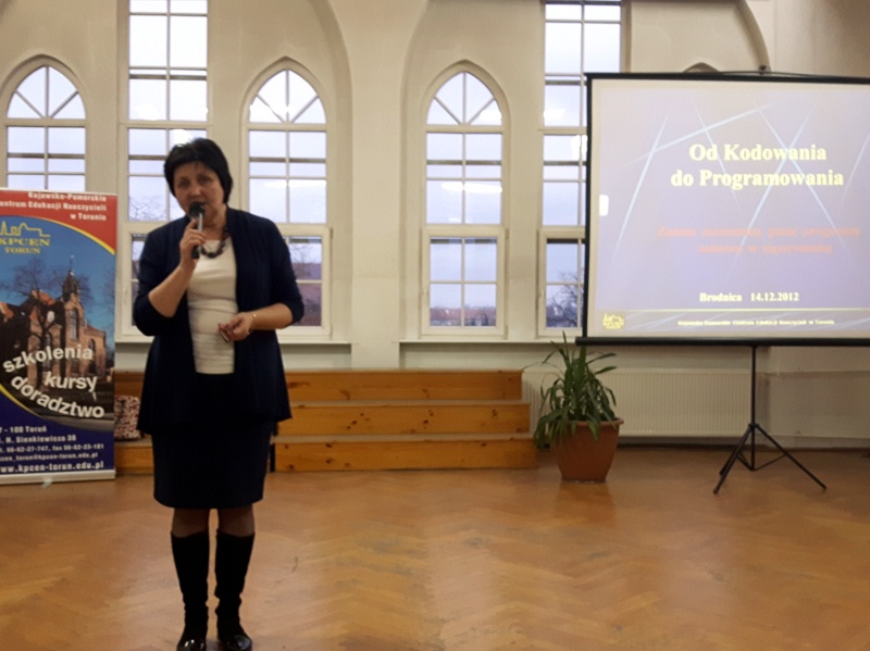 do programowania”, który wygłosił Wacław Kozłowski, konsultant Pracowni Dydaktyki, Doradztwa i Innowacyjnej Edukacji Kujawsko-Pomorskiego Centrum Edukacji Nauczycieli w Toruniu, Anna Kupczyk – kierownik Wydziału Edukacji w Brodnicy, podziękowała wszystkim prowadzącym za przygotowanie i organizację konferencji w Brodnicy.