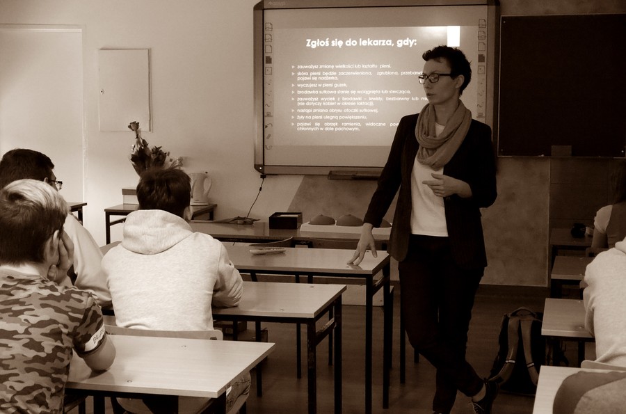 Projektu prowadzony jest w oparciu o wykład połączony z instruktażem samobadania prowadzonym na silikonowych modelach.