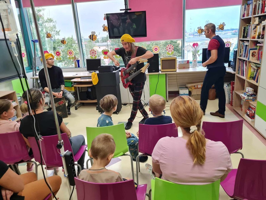 W tym roku przez dwa miesiące wakacji realizowaliśmy projekt „Wakacyjna Kuźnia Artystyczna” we współpracy z Krzysztofem Toczko ze Stowarzyszenia Żółty Beret, który był pomysłodawcą tego przedsięwzięcia. Co tydzień, a czasami dwa razy w tygodniu pacjenci Kliniki Onkologii i Kliniki Psychiatrii Szpitala Uniwersyteckiego nr 1 mieli możliwość uczestnictwa w twórczych zajęciach z elementami muzyki, grania na instrumentach, improwizacji, iluzji, robotyki i zajęć plastycznych. Dwa spotkania odbyły się także dla pacjentów Wojewódzkiego Szpitala Dziecięcego. W realizacji tego przedsięwzięcia wspierali nas: Krzysztof i Mikołaj Toczko – Stowarzyszenie Żółty Beret, Cezary Markiewicz -Stowarzyszenie Twórców Sztuki „Współ.gra,” i Teatr Polski, Michał Siedlecki – Centrum Edukacyjne ROBOprojekt oraz „Współ.gra”, Adrian Błotny – Stowarzyszenie Twórców Sztuki „Współ.gra,”, Jakub Walkowiak – Illuzjum oraz Fundacja Pozytywka, z ramienia której odwiedzili dzieci Mr Copini i Mieczysław Giedrojć.