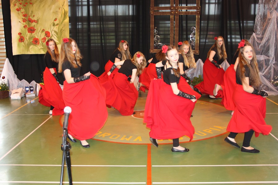 Taniec hiszpański w wykonaniu uczennic ZS w Dąbrowie Biskupiej
