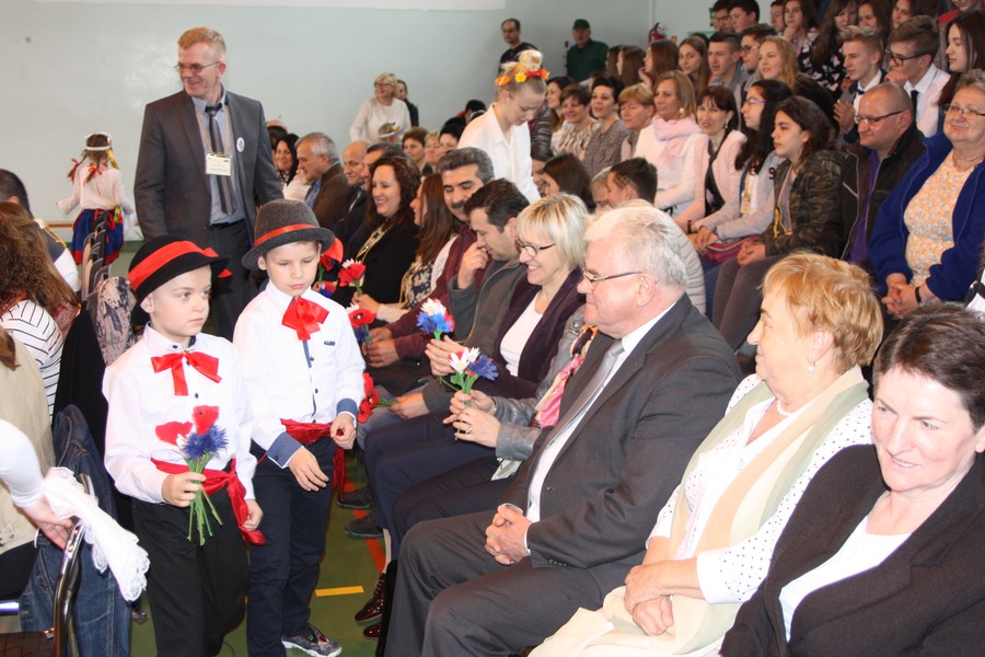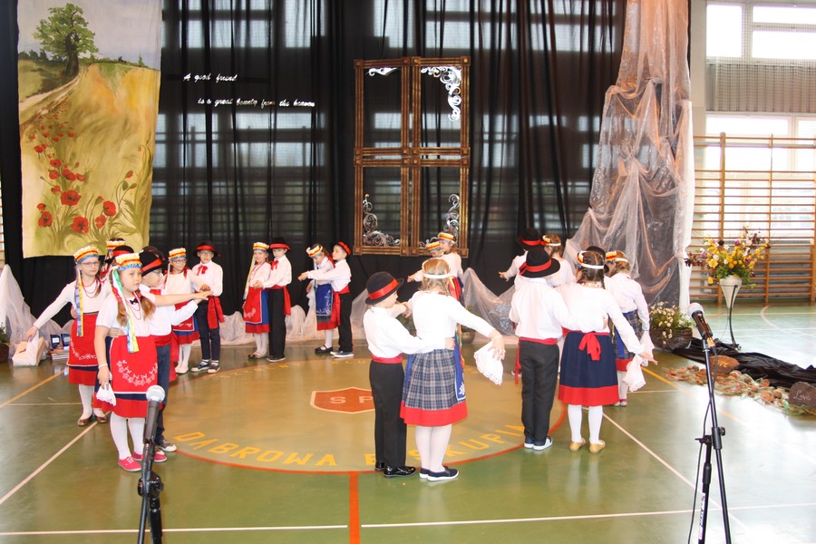 Prezentacja projektu przez partnera z TurcjiTaniec hiszpański w wykonaniu uczennic ZS w Dąbrowie BiskupiejUczniowie  ZS w Dąbrowie Biskupiej tańczą kujawiakaWspólne  śpiewanieZaproszeni  goście, uczniowie, nauczyciele i rodzice