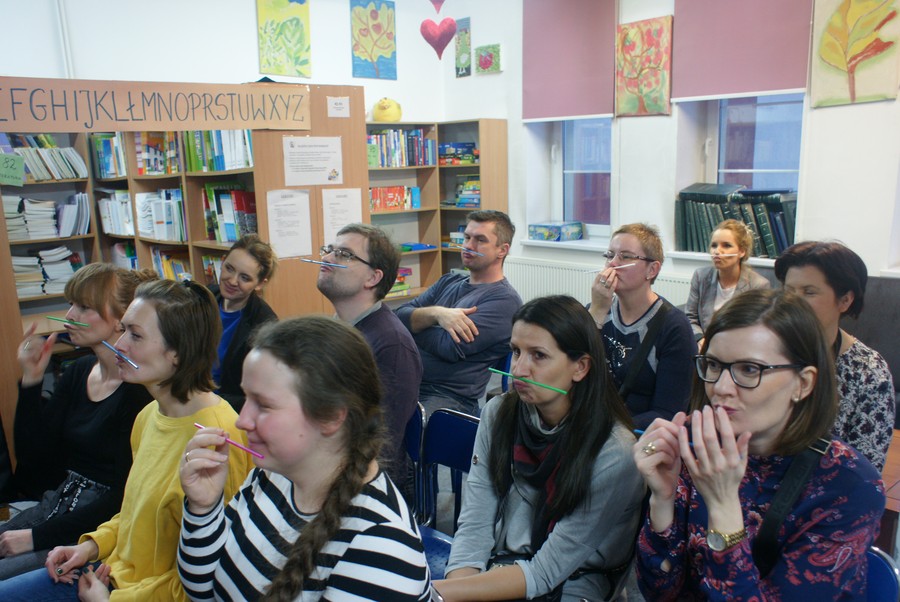 Rodzice dzieci objętych Wczesnym Wspomaganiem Rozwoju uczestniczyli w warsztatach neurologopedycznych oraz w spotkaniu z fizjoterapeutą. Podczas spotkania z logopedą omówiono funkcje motoryczne narządów mowy oraz zapoznano przybyłych z ćwiczeniami usprawniającymi aparat artykulacyjny dzieci. Szkolenie z fizjoterapeutą miało charakter praktyczny i dotyczyło ćwiczeń zapobiegającym wadom postawy u dzieci oraz odpowiedniej postawy maluchów w formie domowej zabawy.