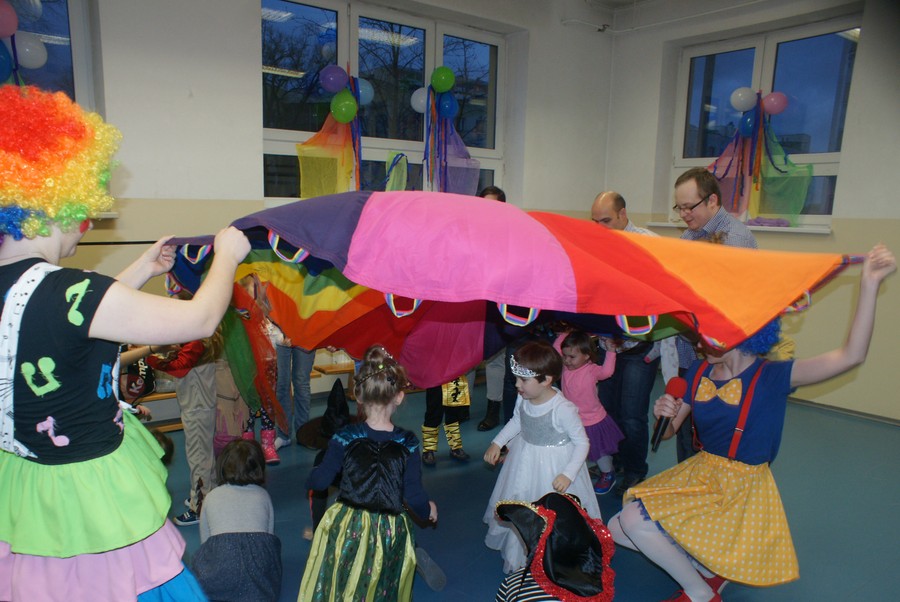 Jak przystało na karnawał nasi milusińscy przybyli na zabawę przebrani w śliczne stroje: piratów, zwierząt, postaci z bajek. Dziękujemy rodzicom za przygotowanie tak wspaniałych kreacji dla naszych maluszków! Wolontariusze z Fundacji zaproponowali dzieciom wiele atrakcji, a wśród nich: zabawy z matą, układy taneczne, zwierzęta z baloników, wspólne śpiewanie.