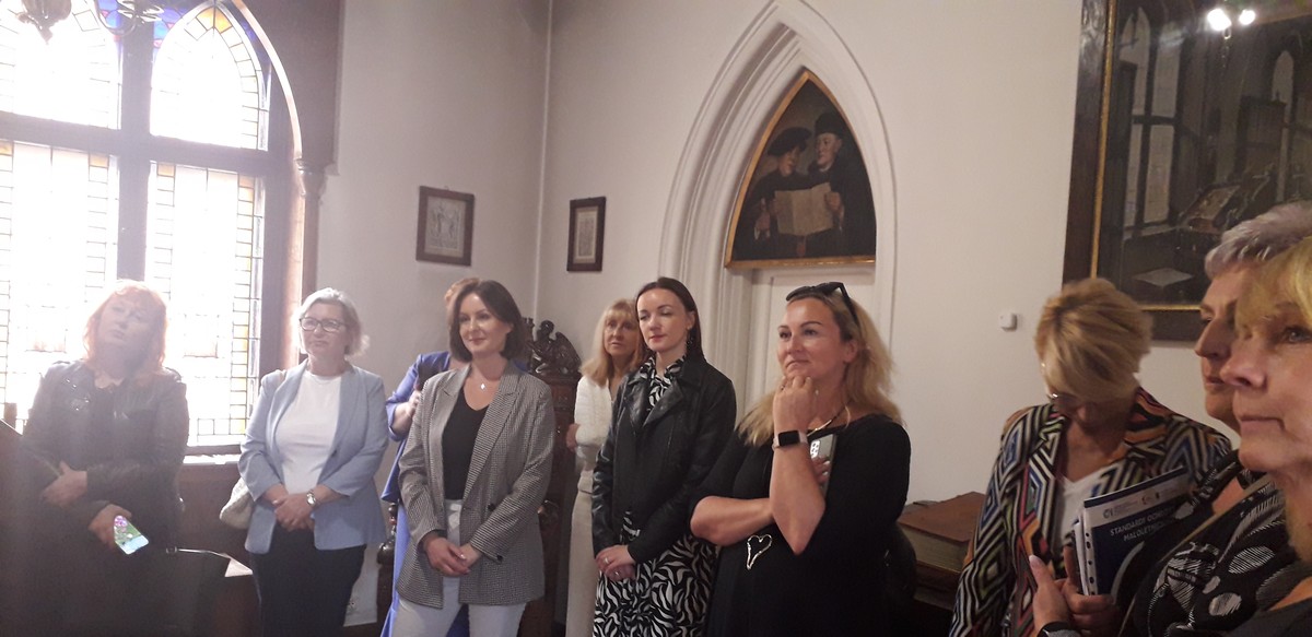 12 czerwca 2024 roku odbyło się ostatnie spotkanie dyrektorów szkół i placówek w ramach sieci samokształcenia i współpracy organizowanej przez KPCEN w Bydgoszczy. Tym razem wybraliśmy się do Wojewódzkiej i Miejskiej Biblioteki Publicznej im. Witolda Bełzy w Bydgoszczy na zaproszenie Karoliny Stanek, kierownika Działu Informacji i Bibliografii. Mieliśmy okazję gościć w unikalnej części biblioteki, do której na co dzień czytelnicy nie mają dostępu. Odwiedziliśmy między innymi poklasztorną Bibliotekę Bernardynów, najcenniejszy i najstarszy księgozbiór przechowywany w bibliotece, Pracownię Regionalną, gdzie zaprezentowane zostały najwartościowsze zbiory, które na co dzień udostępniane są na miejscu lub w wersji elektronicznej.