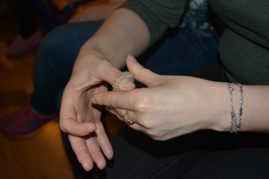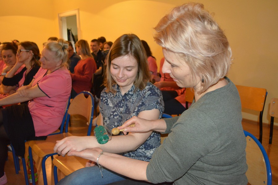 Uczestnicy spotkania, fot. Monika Kwaśniewska-AdryanPrawidłowa postawa, fot. Monika Kwaśniewska-AdryanMasaż dla cierpiących na bóle migrenowe, fot. Monika Kwaśniewska-AdryanPraktyczne wskazówki, fot. Monika Kwaśniewska-AdryanWspólne ćwiczenia, fot. Monika Kwaśniewska-AdryanPraktyczny przyrząd do radzenia sobie z bólem, fot. Monika Kwaśniewska-AdryanPierścień do masażu, fot. Monika Kwaśniewska-Adryan