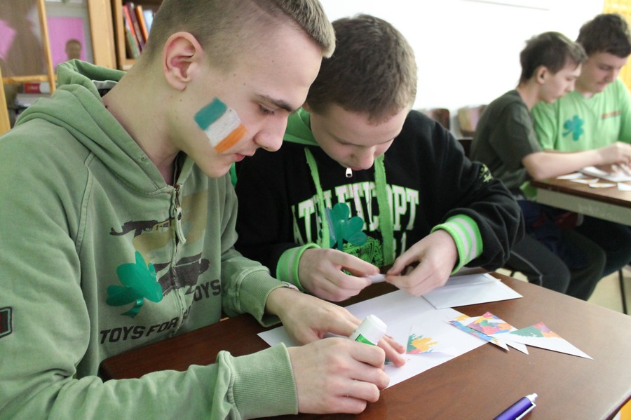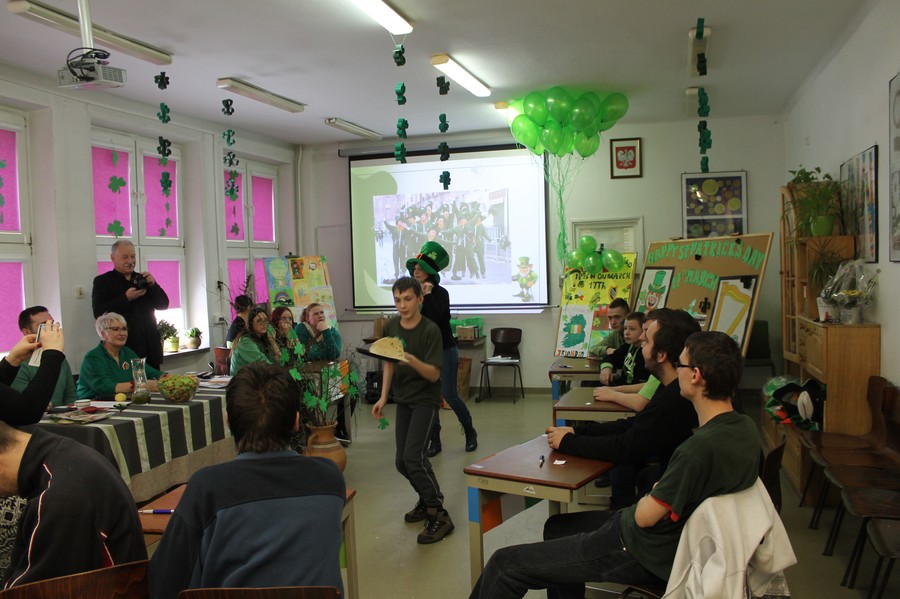W tygodniu poprzedzającym uroczystości uczniowie z klas 4 i 5 Szkoły Podstawowej – w ramach projektu „Podróże małe i duże” – zapoznały się z historią, zabytkami i kuchnią Irlandii, wykorzystując przy okazji mapy i atlasy znajdujące się w bibliotece szkolnej. Uczniowie Gimnazjum wraz z nauczycielem geografii przygotowali gazetkę dotyczącą położenia i gospodarki wyspiarskiej Irlandii. Z kolei uczniowie ZSZ w ramach kółka Młody dziennikarz wykonali gazetkę poświęcone pisarzom irlandzkim i ich dziełom. Najmłodsi uczniowie z klas początkowych Szkoły Podstawowej wzięli udział w międzyszkolnym konkursie plastycznym „Zielona Irlandia”. Zadaniem małych artystów było wykonanie portretu św. Patryka lub dowolnej pracy związanej z Irlandią, przy użyciu wybranych przez siebie technik plastycznych.