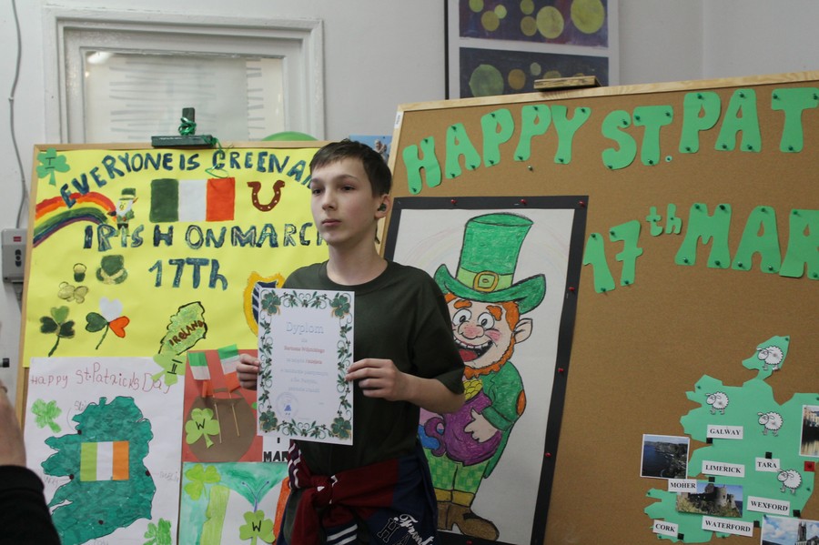 Przedstawiciele poszczególnych szkół musieli wykazać się nie tylko wiedzą merytoryczną dotyczącą Szmaragdowej Wyspy, ale również muzyczną, refleksem i kreatywnością. Uczniowie mieli możliwość spróbować swoich sił w konkurencji podrzucania naleśników, a także piciu soku pietruszkowego na czas. Konkurs wygrała drużyna z Zespołu Szkół nr 6 w Toruniu, a wszyscy uczestnicy otrzymali nagrody, upominki. Na zakończenie wszyscy uczestnicy i ich opiekunowie, na kartkach w kształcie koniczynki, napisali swoje marzenia, przywiązali je do baloników i puścili do nieba z nadzieją, że się spełnią.