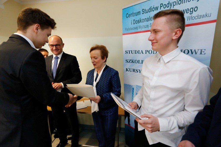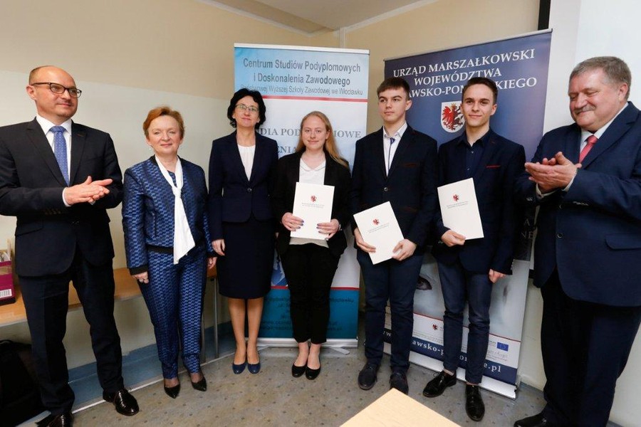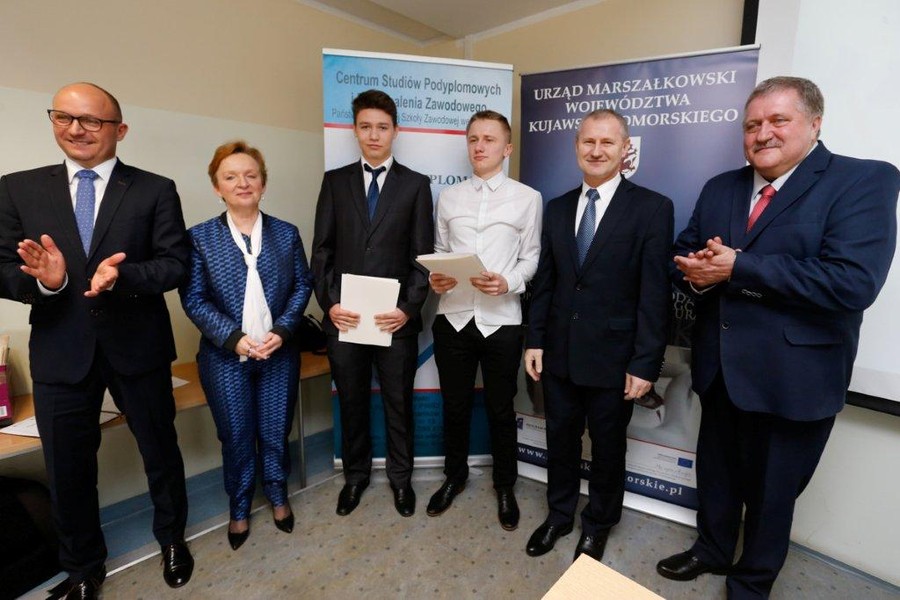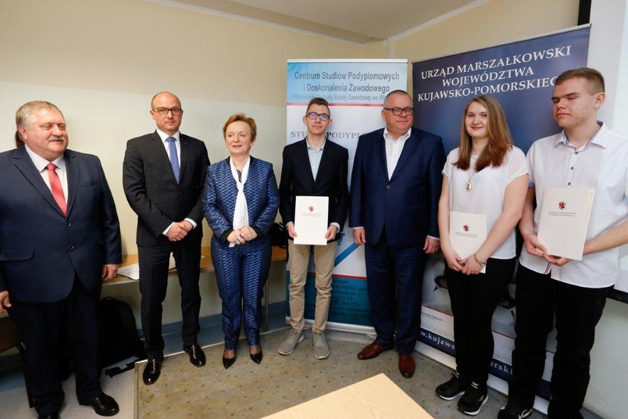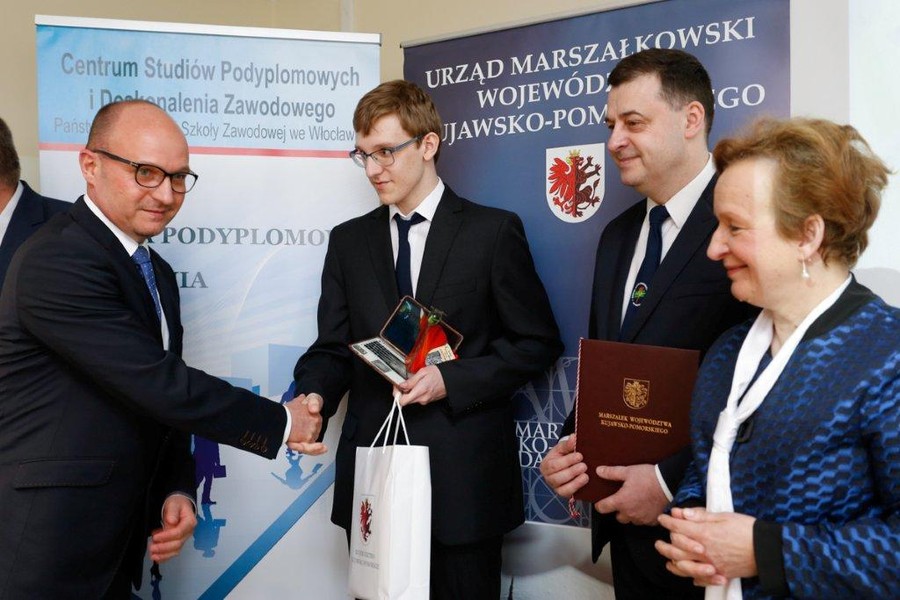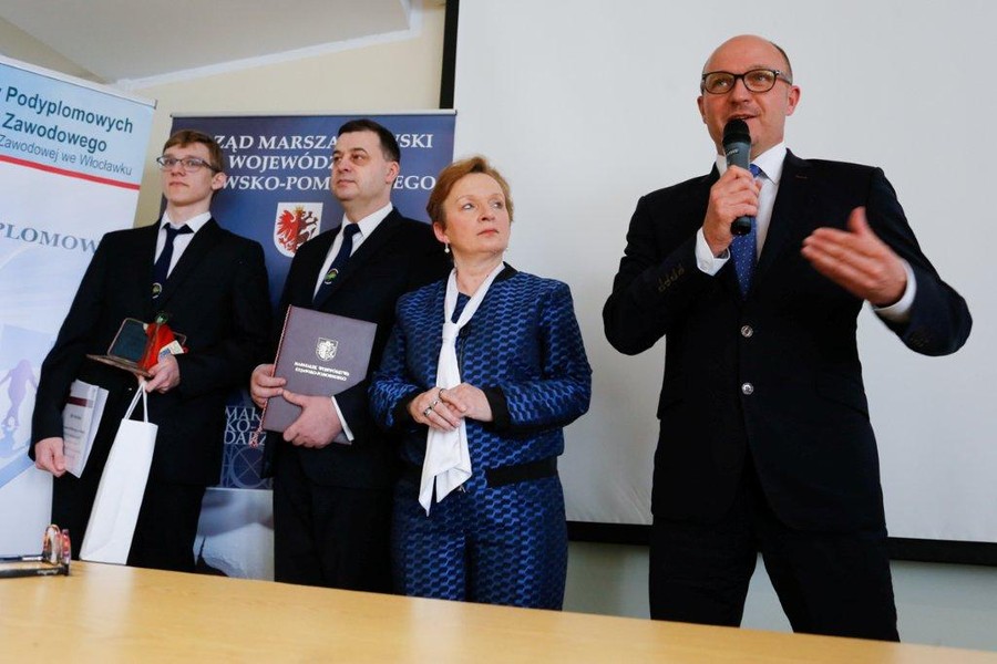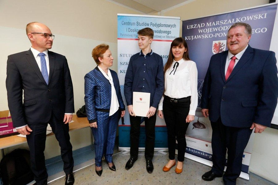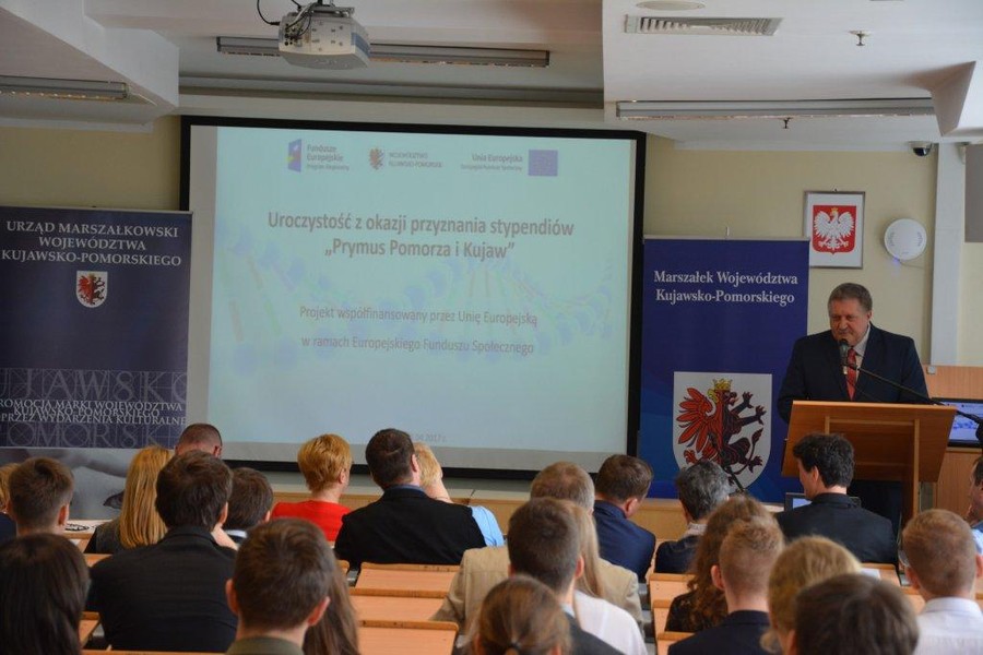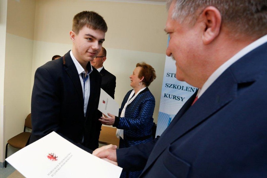 Z rąk Członka Zarządu Województwa Kujawsko-Pomorskiego Sławomira Kopyścia stypendyści otrzymali listy gratulacyjne, a najlepszy stypendysta projektu w kategorii techników – Piotr Marciniak z Zespołu Szkół Elektrycznych we Włocławku – otrzymał statuetkę „Prymusa Pomorza i Kujaw”. Gratulacje stypendystom złożył także Prezydent Miasta Włocławek Marek Wojtkowski.