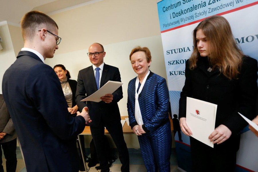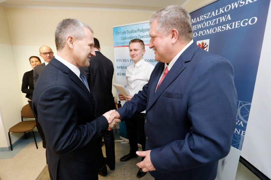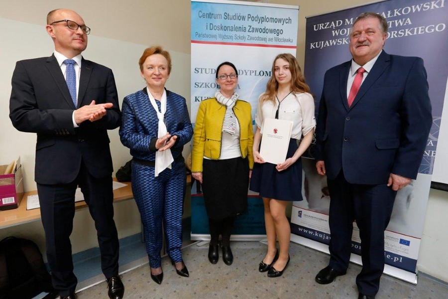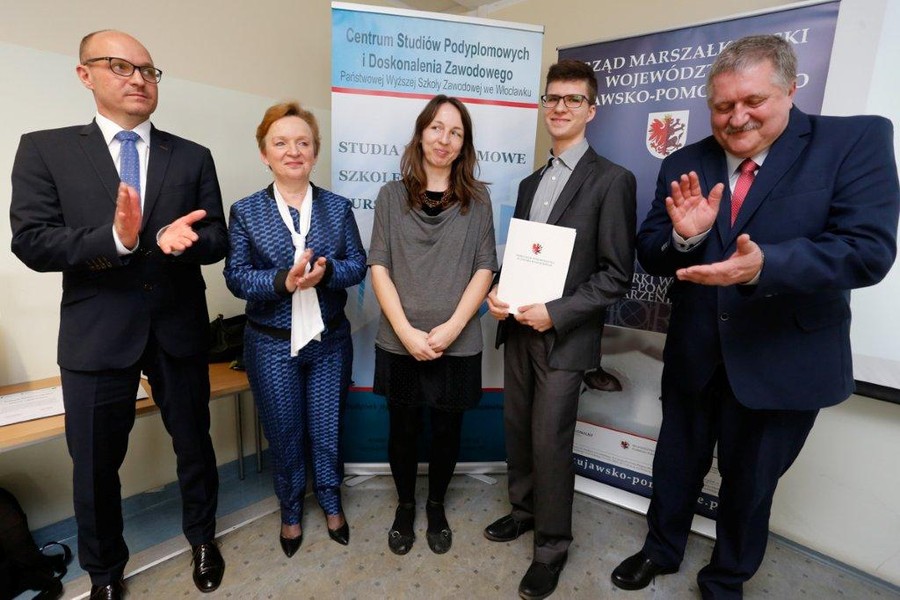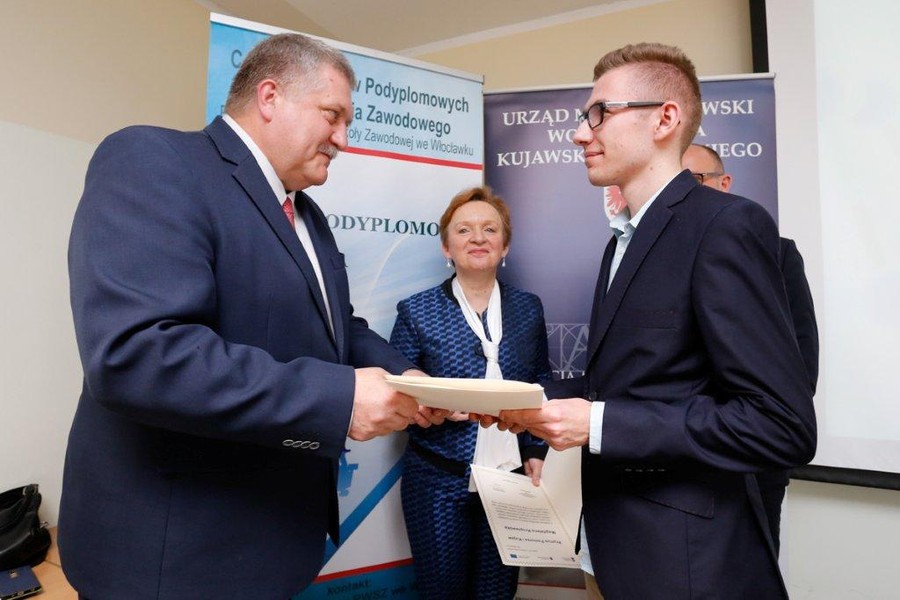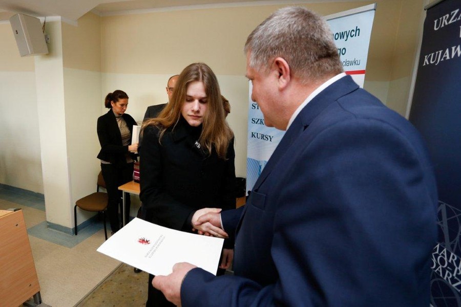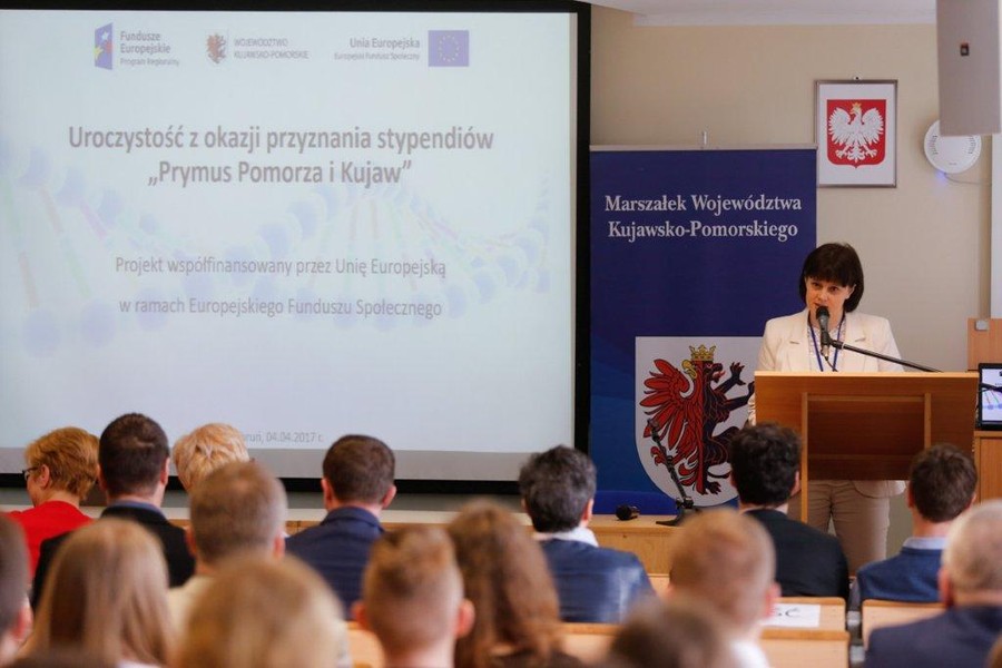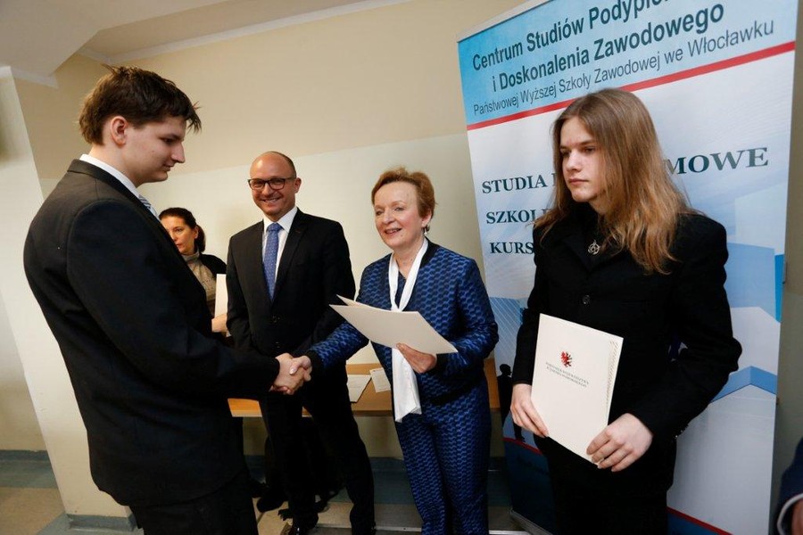 Z rąk Członka Zarządu Województwa Kujawsko-Pomorskiego Sławomira Kopyścia stypendyści otrzymali listy gratulacyjne, a najlepszy stypendysta projektu w kategorii techników – Piotr Marciniak z Zespołu Szkół Elektrycznych we Włocławku – otrzymał statuetkę „Prymusa Pomorza i Kujaw”. Gratulacje stypendystom złożył także Prezydent Miasta Włocławek Marek Wojtkowski.