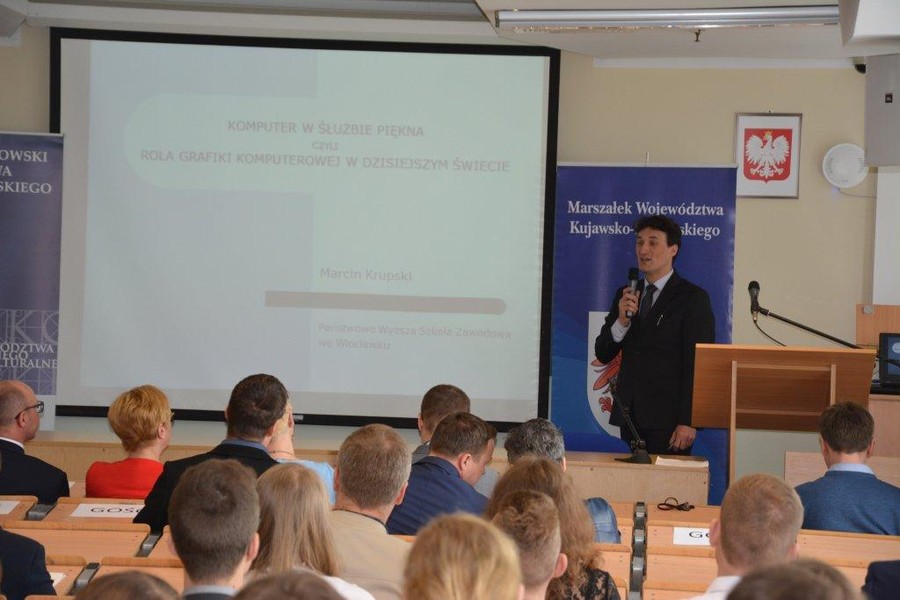 W części naukowej konferencji stypendyści, dyrektorzy szkół i nauczyciele uczestniczyli w wykładzie dra inż. Marcina Krupskiego „Komputer w służbie piękna, czyli rola grafiki komputerowej we współczesnym życiu” oraz mieli okazję zwiedzić laboratoria naukowe PWSZ.