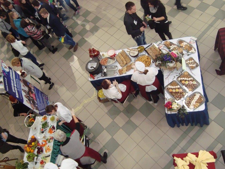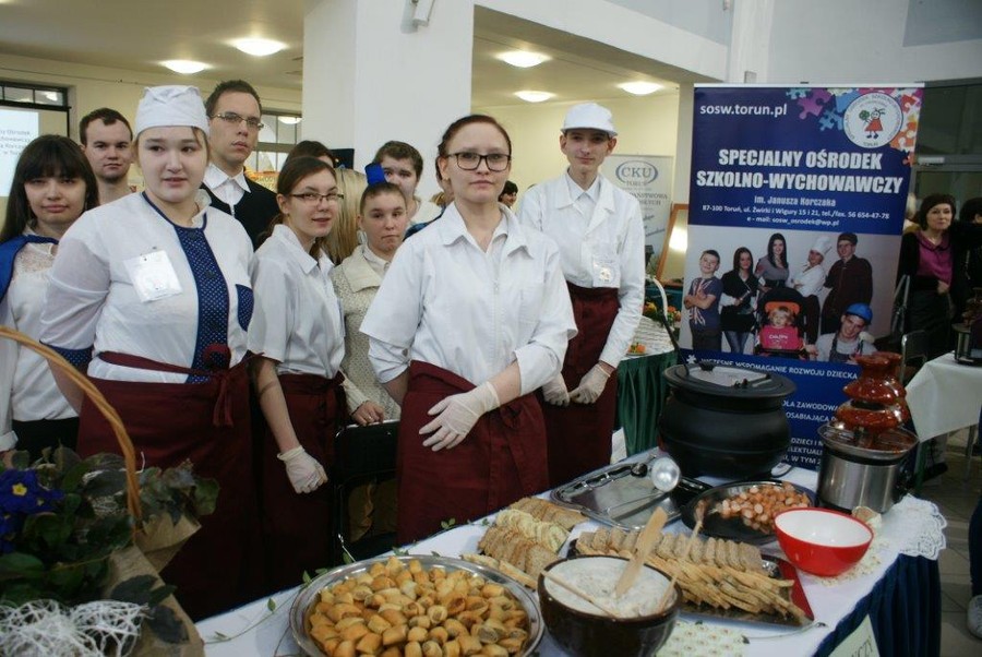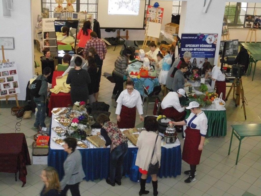 Zwiedzający byli bardzo zainteresowani stoiskami przygotowanymi przez wychowanków i nauczycieli. Uczniowie Specjalnego Ośrodka Szkolno-Wychowawczego w Toruniu kształcący się w zawodach kucharz i cukiernik przygotowali wiele smakowitych atrakcji: „ketchupową fontannę” z kiełbaskami, mini paszteciki, ziołowe paluchy, zakąski, babeczki, piwoszki, mufinki i beziki. Nasi uzdolnieni artystycznie wychowankowie zaprezentowali sztukę rzeźbienia w warzywach i owocach oraz ozdobne składanie ręczników hotelowych. Dużym zainteresowaniem cieszyło się stoisko fryzjerskie, na którym powstawały fantazyjne, inspirowane wiosną fryzury. Uczennice kształcące się w zawodzie krawiec wykonywały ozdoby wielkanocne, szyły na maszynach sterowanych komputerowo. Uczniowie zawodów: stolarz, monter zabudowy i robót wykończeniowych w budownictwie ,monter sieci i instalacji sanitarnych zademonstrowali ćwiczenia połączeń stolarskich ściennych i płaskich oraz złączy na wczepy i czopy. Młodzież ze Szkoły Przysposabiającej do Pracy przedstawiła wytwory swojej pracy w prowansalskiej aranżacji oraz wspólnie z nauczycielami poprowadziła warsztaty artystyczne pod nazwą „Szklane i jedwabne inspiracje”.