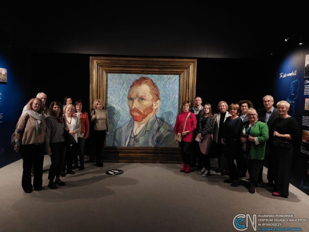 21.10.2025 roku nauczyciele z Kujawsko-Pomorskiego Centrum Edukacji Nauczycieli w Bydgoszczy zwiedzili wystawę Van Gogh & Friends w Bydgoskim Centrum Targowo-Wystawienniczym. Zebrane grono miało okazję zanurzyć się w twórczość wielkiego malarza poprzez reprodukcje jego obrazów, wirtualny spacer w okularach VR oraz specjalną projekcję, gdzie malarstwo oddziaływało w sposób multisensoryczny. Oprócz dziedzictwa Vincenta van Gogha można było zapoznać się z dziełami takich artystów jak Claude Monet, Edgar Degas, Paul Gauguin czy Pierre-Auguste Renoir. Było to inspirujące spotkanie ze sztuką, które przełoży się na nowe pomysły na działania edukacyjne.