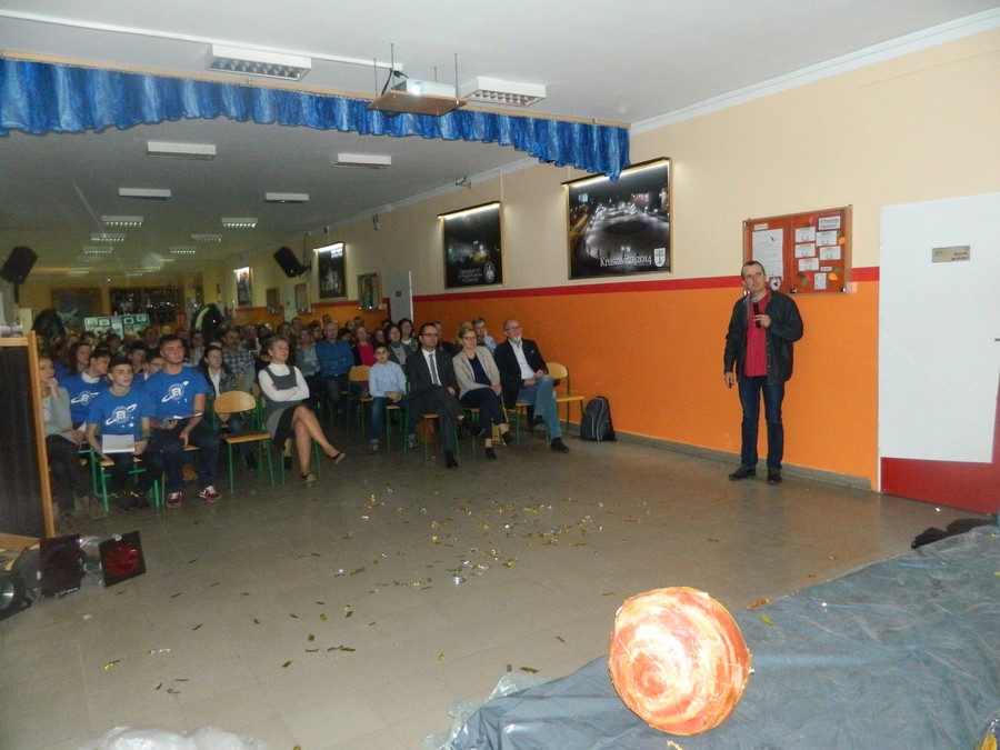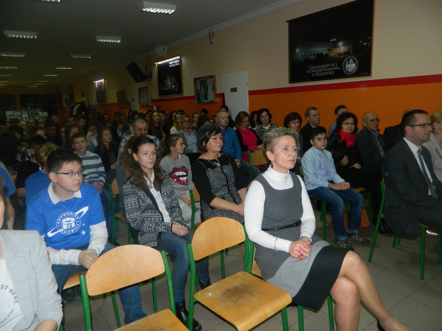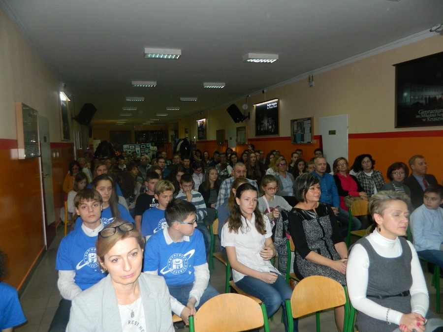 Swoją obecnością zaszczyciło nas ponad 120 gości, a wśród nich byli: Przewodniczący Rady Miejskiej wraz z radnymi, wykładowca UMK w Toruniu, Dyrektor Oświaty i Wychowania w Kruszwicy, koordynatorzy Astrobaz, Dyrektorzy Szkół i nauczyciele wraz z uczniami, słuchacze Uniwersytetu Trzeciego Wieku, rodzice, miłośnicy astronomii, absolwenci naszego gimnazjum oraz mieszkańcy Kruszwicy i okolic zainteresowani astronomią.