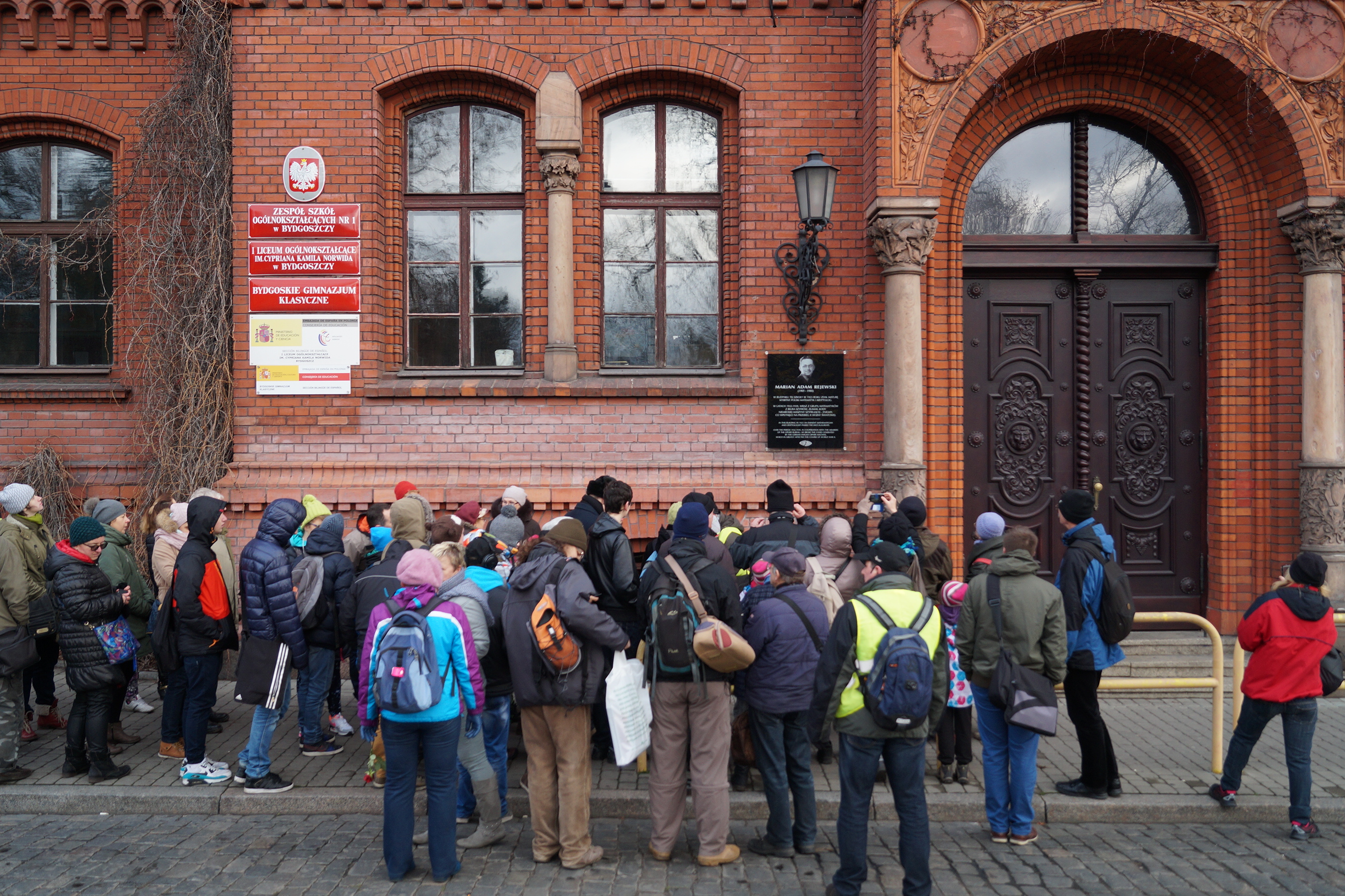 Uczestnicy, pod przewodnictwem prezesa Klubu Tomasza Stenki, przeszli stamtąd szlakiem miejsc związanych z Marianem Rejewskim – od ulicy Wileńskiej poprzez Zduny, Dworcową, Gdańską, ławeczkę przy ul. Śniadeckich, aż do budynku Pedagogicznej Biblioteki Wojewódzkiej im. Mariana Rejewskiego przy ul. M. Skłodowskiej-Curie 4.