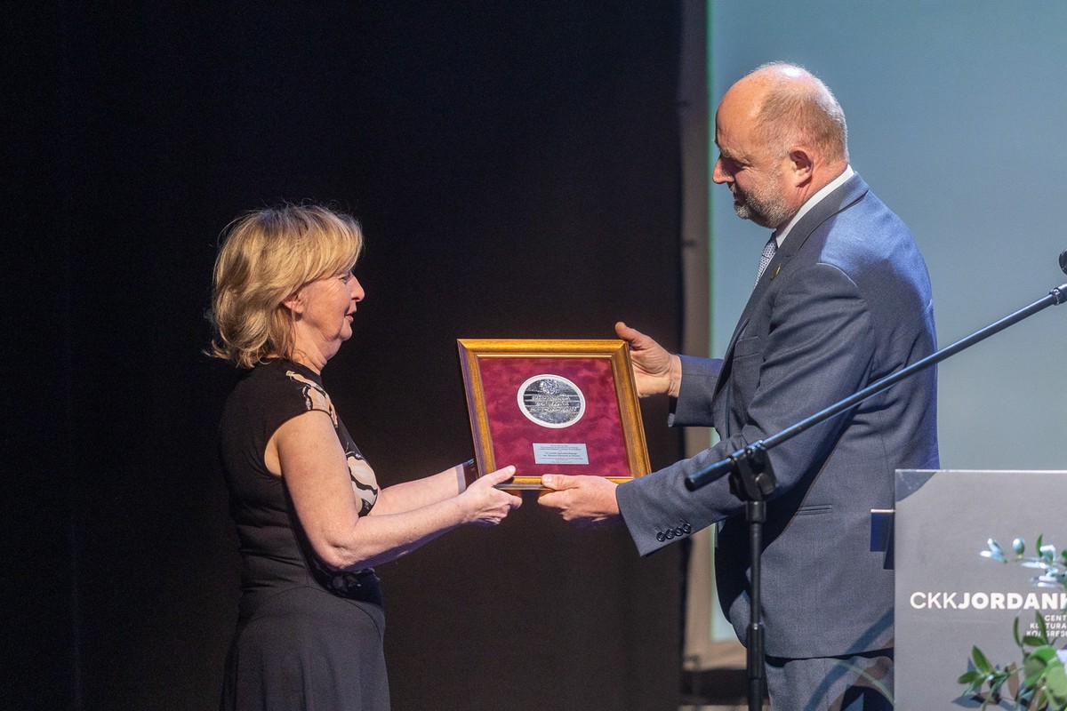 Your eighty-year history is an example of building a good school, which is a community of people who respect each other, accept each other and set themselves the highest goals,” said Marshal Piotr Całbecki as he presented Małgorzata Białek, headmistress of Secondary School No. 4 in Toruń, with the Unitas Durat Palatinatus Cuiaviano-Pomeraniensis medal [In unity, the Kujawsko-Pomorskie voivodship endures] during Monday’s (16 June) anniversary celebrations at the Jordanki Cultural and Congress Centre.