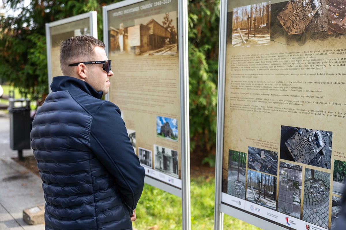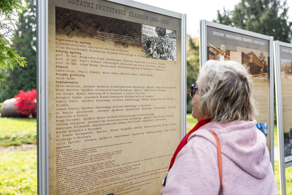 One of the most harrowing crimes of the 20th century, silenced for decades, now speaks once again in the public space. Today (October 22) in Toruń, the outdoor exhibition “Last Stop Kharkiv 1940–2025” was opened. The ceremony was attended by Vice-Marshal of the Kujawsko-Pomorskie Voivodeship Zbigniew Ostrowski.