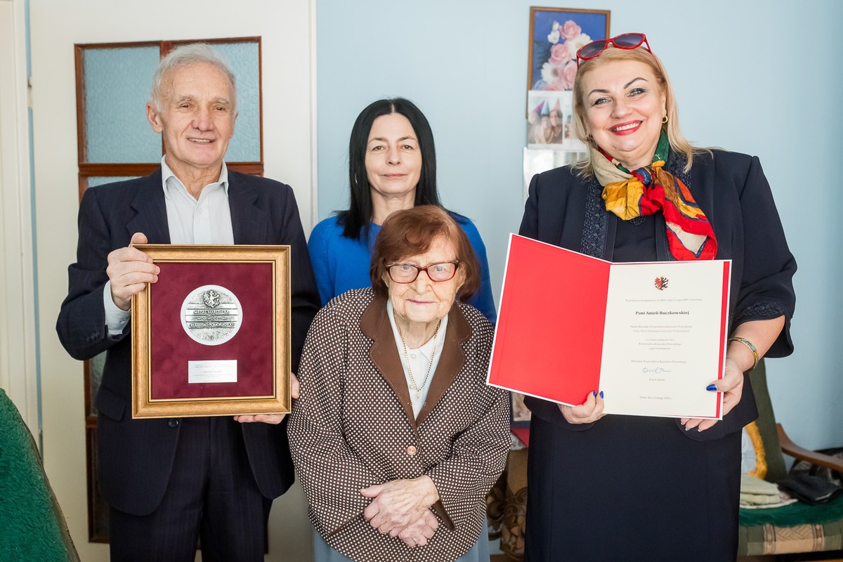 Despite their wartime experiences and difficult youth, they have not lost their cheerfulness. The centenarians – Aniela Buczkowska from Barcin and Gracjan Zodel from Bydgoszcz, as well as 100-year-old Zofia Siwińska from Izbica Kujawska – are in good health, smiling and following current events with interest all the time. The doyens were visited by the President of the regional parliament Elżbieta Piniewska, Vice-Marshal Zbigniew Ostrowski and Vice-Marshal Aneta Jędrzejewska.