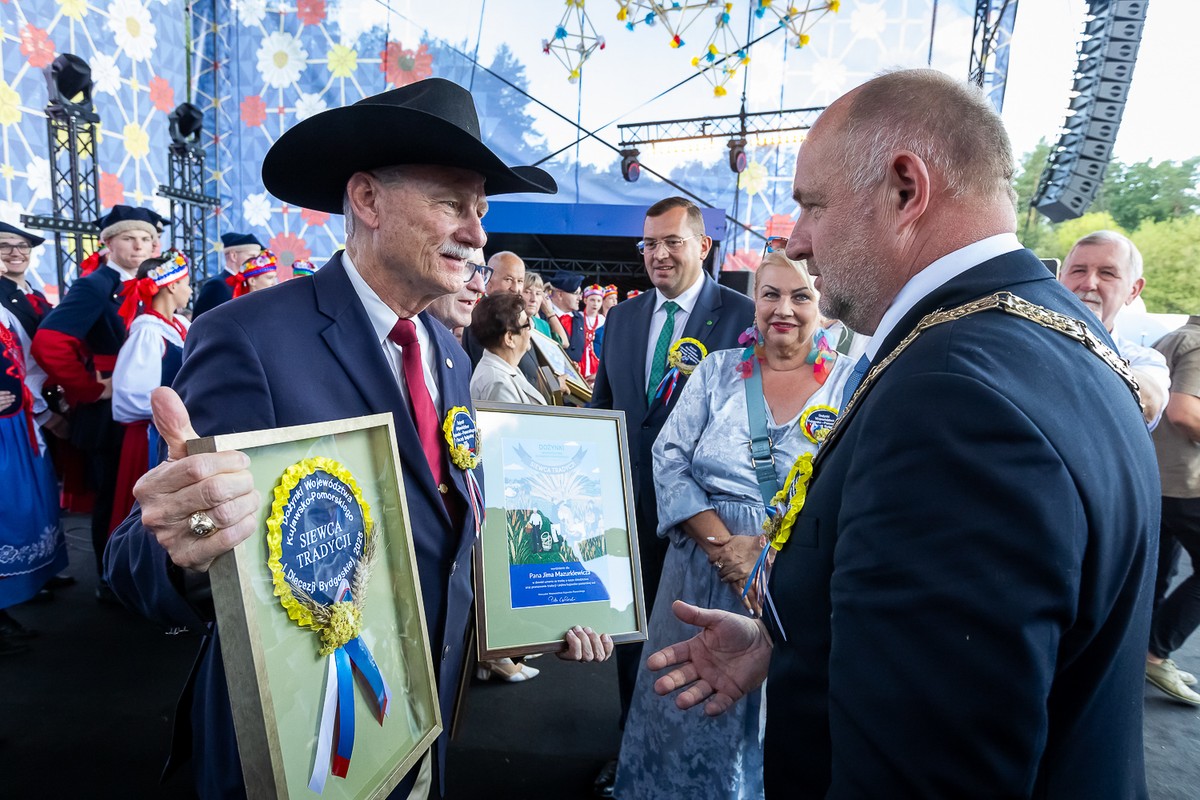 After the official ceremonies, a large harvest picnic took place in Myślęcinek, featuring a fair, presentations by rural women’s associations, performances by folk bands, an exhibition of agricultural machinery, and displays of Polish army equipment (including a field hospital presented by the 10th Military Clinical Hospital in Bydgoszcz). Later in the afternoon, there was a bridal fashion show by well-known designer Kamila Froelke, who presented a collection inspired by the folklore of Kujawy and Kociewie. The evening star was Andrzej Piaseczny.