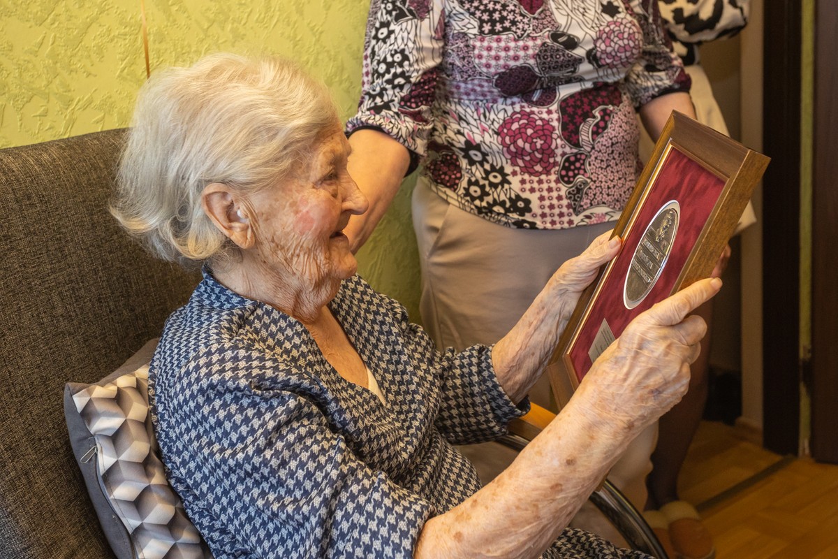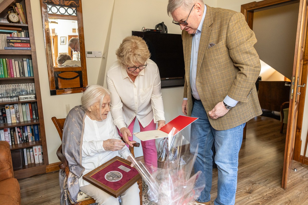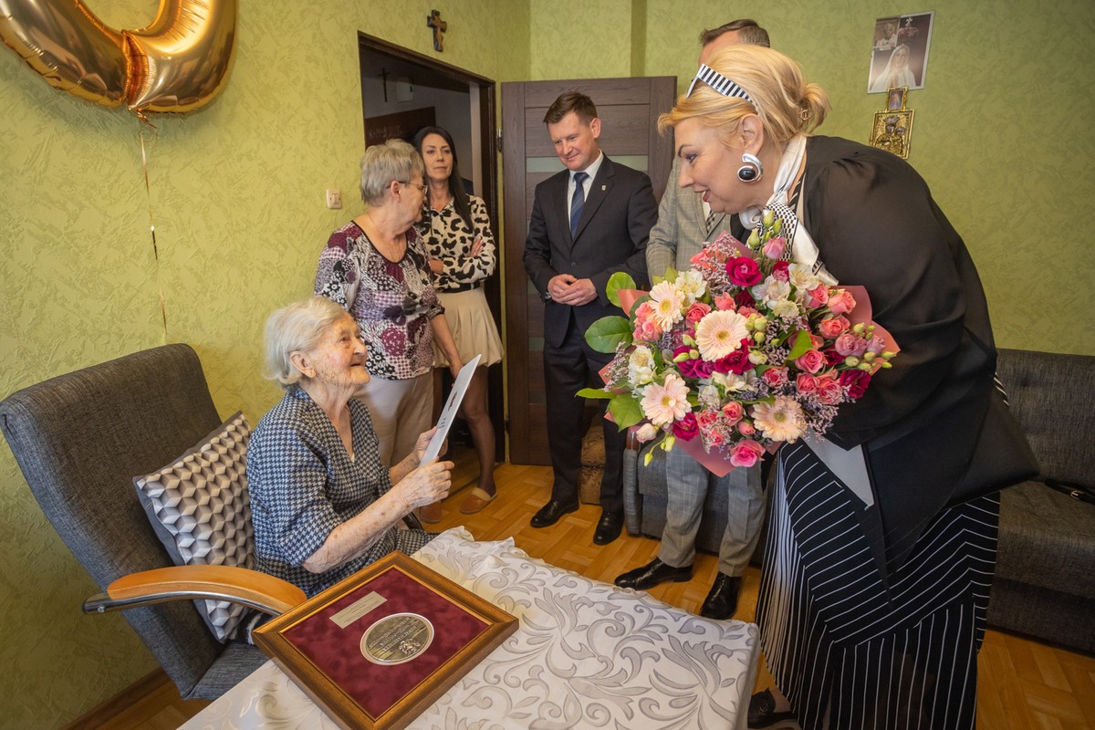 On her 100th birthday, she was visited by the President of the Regional Parliament, Elżbieta Piniewska, and Regional Executive Board Member, Dariusz Kurzawa.