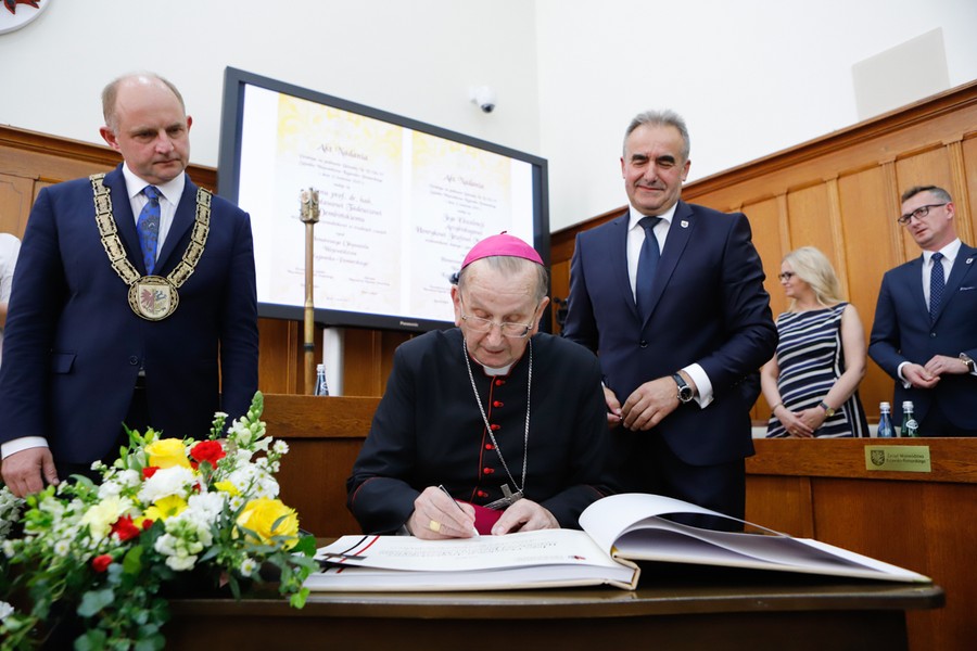 „Jest tym, który dowiódł, że wspólna droga jest możliwa jeśli wyznaczy się wspólne cele i szczerze dąży do ich osiągnięcia. Jego życiorys splata się z losami naszych ziem. Poprzez posługę w diecezji pelplińskiej, włocławskiej i w końcu gnieźnieńskiej nie tylko współtworzy naszą historię, ale przede wszystkim trwale związał się z wieloma ludźmi, dla których jest mistrzem i prawdziwym przyjacielem” – czytamy w uchwale.