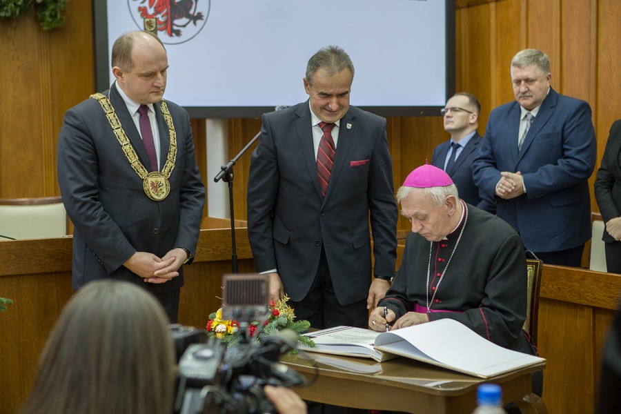 „Samorząd województwa zawsze może liczyć na życzliwość i współpracę księdza biskupa w realizacji projektów służących mieszkańcom regionu. Obdarzony jest wielkim, powszechnym szacunkiem. Zjednała go mądrość kaznodziei i pracowitość gospodarza, umiejętność dialogu i promieniująca serdeczność” – czytamy w uzasadnieniu przyjętej w październiku przez sejmik województwa uchwały o nadaniu honorowego obywatelstwa.