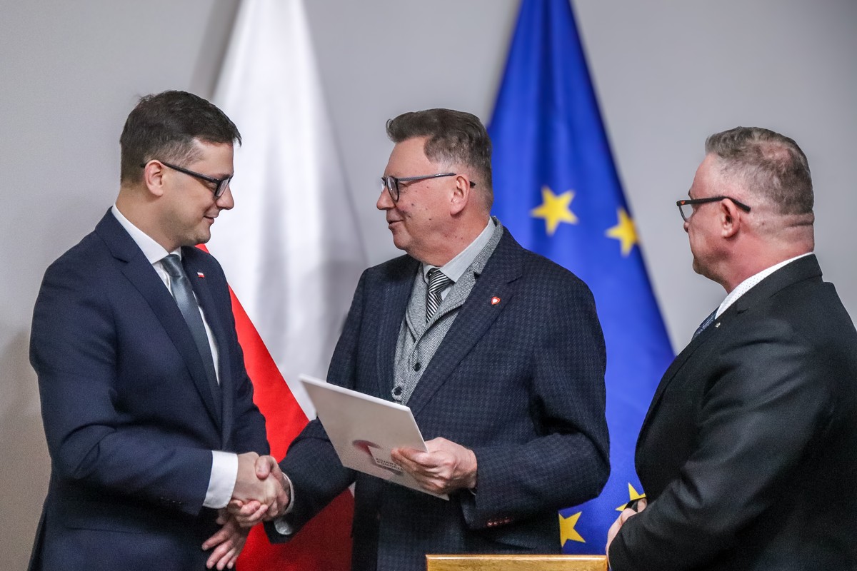 Pan Zbigniew Ostrowski, Wicemarszałek Województwa Kujawsko-Pomorskiego wręczył Panu Michałowi Sztyblowi, Wojewodzie Kujawsko-Pomorskiemu akt powołania na Wiceprzewodniczącego Kujawsko-Pomorskiej Wojewódzkiej Rady Dialogu Społecznego, reprezentującemu stronę rządową w Radzie.