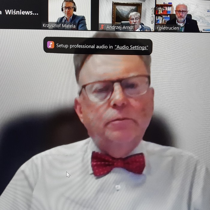 Posiedzenie Prezydium K-P WRDS - p. dr Krzysztof MatelaPosiedzenie Prezydium K-P WRDS - p. Roman RogalskiPosiedzenie Prezydium K-P WRDS - p. Tomasz MoraczewskiPosiedzenie Prezydium K-P WRDS - u góry od lewej p. Matela, p. Arndt, p. Pietrucień, centralnie p. Zbigniew Ostrowski