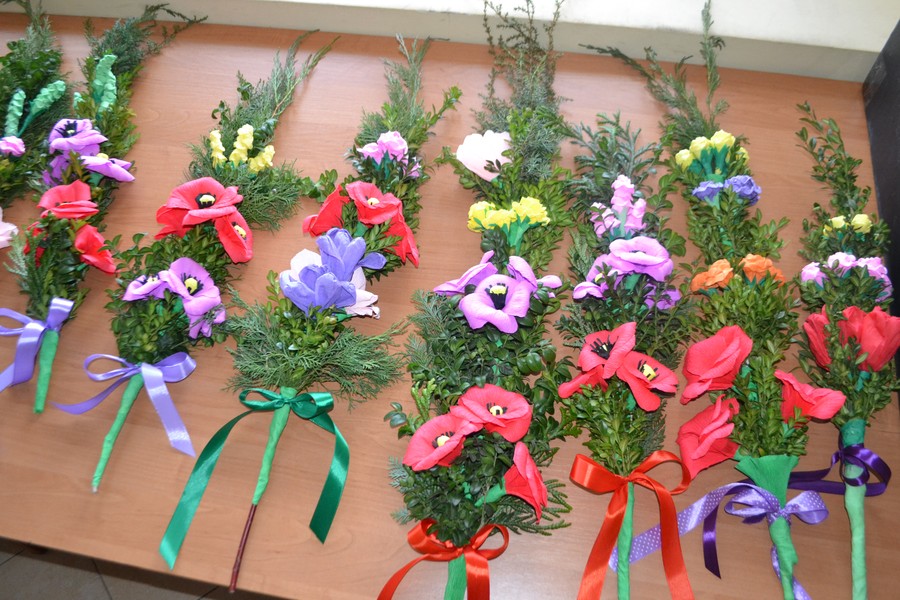 Podczas warsztatów uczestnicy wykonali tradycyjne palmy wielkanocne z bukszpanu, trzciny wodnej, gałązek wierzbowych z baziami oraz kłosów zbóż. Własnoręcznie zrobione kolorowe kwiaty z bibuły i krepiny sprawiły, że każda palma była niepowtarzalnie piękna.