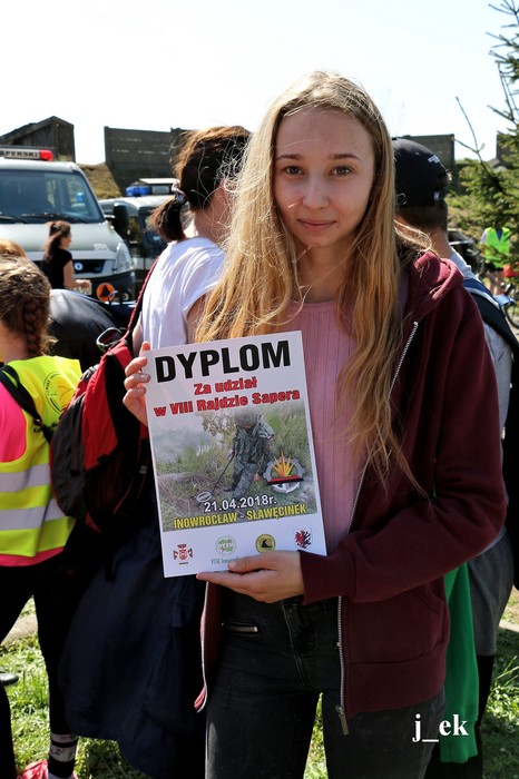 Inowrocławski Oddział PTTK wraz z saperami z 2 Pułku Inżynieryjnego z Inowrocławia, Stowarzyszeniem Saperów Polskich z Koła nr 11 w Inowrocławiu oraz Urzędem Marszałkowskim Województwa Kujawsko-Pomorskiego już po raz ósmy zorganizował 21 kwietnia br. „Rajd Sapera”. Uczestnicy rajdu wyruszyli z inowrocławskiego Parku Solankowego i udali się na poligon wojskowy w Sławęcinku, maszerując przez Mimowolę i Sławęcin. Trasa piesza liczyła ok. 8 km, natomiast trasa rowerowa ok. 30 km. W imprezie uczestniczyła młodzież ze szkół podstawowych z Inowrocławia, turyści indywidualni, oraz kolarze. Trasę pieszą pokonało 186 osób, trasę rowerową – blisko 50 kolarzy z Klubu Turystyki Rowerowej „Kujawiak” w Inowrocławiu oraz z Oddziału PTTK w Kruszwicy. W imprezie wzięli również udział zaproszeni goście: Wiesława Pawłowska – Radna Powiatu Inowrocławskiego, Jarosław Kopeć – Radny Miasta Inowrocławia, przedstawiciele Związku Żołnierzy Wojska Polskiego z Koła nr 7 w Inowrocławiu – Lech Murawski, Zbigniew Doros oraz przedstawiciele Jednostki Wojskowej 1523 2. Pułku Inżynieryjnego w Inowrocławiu z Patrolu Saperskiego nr 14, którzy byli jednocześnie współorganizatorami imprezy. Na zakończenie rajdu na uczestników czekał gorąca grochówka. Rajd Sapera jest imprezą cykliczną, która ma na celu nie tylko świetną zabawę i obcowanie z naturą ale również poznanie specyfiki pracy patrolu saperskiego , zapoznanie się ze sprzętem, który jest na wyposażeniu wozu patrolowego. Na uczestników rajdu czekał konkurs wiedzy historyczno-krajoznawczej, konkurs wiedzy saperskiej oraz część praktyczna z wykrywaczem min. Łącznie nagrodzono 10 osób. Podczas imprezy zostały również wręczone kolarskie odznaki turystyczne. Odznaki w stopniu brązowym otrzymali: Ryszard Dekański, Grzegorz Kaczmarek, Mateusz Bachora oraz Magdalena Kaczmarek; w stopniu mała srebrna: Ryszard Dekańki, Grzegorz Kaczmarek (kolarze zrzeszeni w KTR Kujawiak), Józef Burzyński (Nadgoplański Oddział PTTK W Kruszwicy), w stopniu mała złota: Franciszek Dudziński (Nadgoplański Oddział PTTK W Kruszwicy). Ponadto przyznano brązową odznakę turystyki pieszej (OTP) Łukaszowi Jasińskiemu ze Szkoły Podstawowej nr 4 w Inowrocławiu. Wyróżnieni zostali również najstarsi uczestnicy rajdu: Ryszard Wieczorkiewicz i Stanisław Mikulski. Najmłodszą uczestniczką rajdu została Agata Sobczak ze Szkoły Podstawowej nr 1 z Inowrocławia.