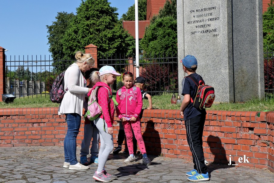 19 maja br., w sobotę, inowrocławski Oddział PTTK wspólnie ze Szkołą Podstawową nr 1 im. św Wojciecha zorganizował spacer szlakiem miejsc związanych  z dziejami naszego miasta. W trakcie spaceru należało zidentyfikować obiekty zaznaczone numerami na planie miasta i przyporządkować im litery odpowiadające rozmieszczonym dookoła fotografiom, wpisując odpowiednie pary liczb i liter na karcie startowej.
