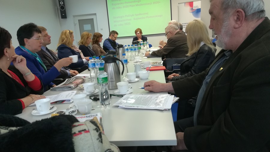 W dniu 26 marca 2018 r. w Departamencie Spraw Społecznych, Wdrażania Europejskiego Funduszu Społecznego i Zdrowia Urzędu Marszałkowskiego Województwa Kujawsko – Pomorskiego w Toruniu, odbyło się wspólne posiedzenie Wojewódzkiej Rady ds. Polityki Senioralnej oraz Wojewódzkiej Społecznej Rady ds. Osób Niepełnosprawnych działających przy Marszałku Województwa. Posiedzeniu przewodniczyła Pani Krystyna Żejmo – Wysocka, Dyrektor Departamentu Spraw Społecznych Wdrażania EFS i Zdrowia.