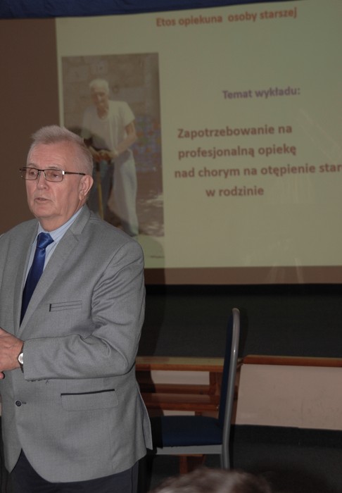 Kolejny prelegent Pan dr hab. Andrzej Mielczarek wygłosił wykład na temat: „Zapotrzebowanie na profesjonalną opiekę nad chorym na otępienie starcze w rodzinie”. Pan Andrzej Mielczarek w swojej wypowiedzi zwrócił uwagę – między innymi – na niezwykle istotną kwestię wiążącą się faktem, że wieloletnia opieka nad chorym stwarza opiekunowi wielorakie obciążenia, wśród których najważniejsze to: obciążenie psychiczne i fizyczne. Prelegent zwrócił uwagę na konieczność wypracowania takiego modelu opieki nad osobą starszą, który – opierając się o rodzinę – będzie też uwzględniał i brał pod uwagę potrzeby i możliwości samych opiekunów.
