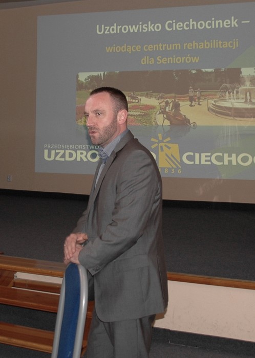 Ostatnim prelegentem zabierającym głos podczas XII posiedzenia WRdsPS był Pan Marcin Zajączkowski, który w swoim wystąpieniu przedstawił ofertę i możliwości wypoczynku, jakie czekają na seniorów przybywających do Uzdrowiska Ciechocinek, do czego serdecznie zachęcał zebranych gości. Informacje przedstawioną przez Pana Prezesa uzupełnił jeszcze Pan Mariusz Krupa – Członek Zarządu Przedsiębiorstwa Uzdrowisko Ciechocinek S.A., który ponadto zaprezentował krótko historię Uzdrowiska Ciechocinek, a następnie „na deser” zaprosił wszystkich zebranych do zwiedzania.