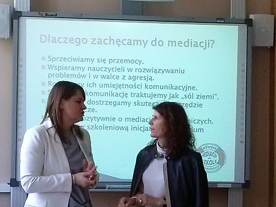 W dniu 13 maja 2019 r., w przyjaznych progach Szkoły Podstawowej im. Kardynała Stefana Wyszyńskiego w Kruszynie, 15 osób, które na co dzień pracują z uczniami klas I-III uczestniczyło w warsztatach pt. Nauczyciel jako mediator w rozwiązywaniu sytuacji trudnych i konfliktowych. Zajęcia, realizowanie przez nauczycieli konsultantów z Kujawsko-Pomorskiego Centrum Edukacji Nauczycieli w Bydgoszczy, przybliżały ideę mediacji jako metody rozwiązywania sporów i konfliktów, możliwość zastosowania tej metody w sytuacjach konfliktowych przez nauczycieli i wychowawców w klasach I-III oraz przez samych uczniów – w klasach starszych (na stronie Rzecznik Praw Dziecka można zapoznać się z rekomendowanymi Standardami mediacji rówieśniczej i szkolnej w szkołach i innych placówkach oświatowych.