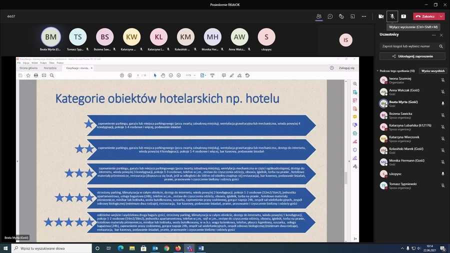 „Klasyfikacja i standaryzacja obiektów hotelowych” omówiła pani Beata Tyburska-Myrta, Departament Sportu i Turystyki Urzędu Marszałkowskiego w Toruniu.