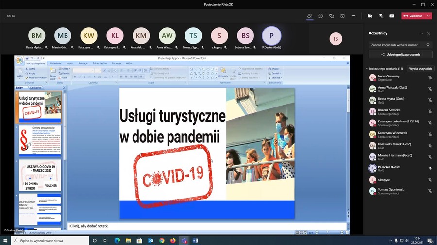 Zgodnie z planem pracy rady omówione zostały dwa zagadnienia związane z ochroną praw konsumentów, tj. kategoryzacja i standaryzacja obiektów hotelowych oraz usługi turystyczne w aspekcie odwołanych imprez turystycznych z powodu COVID-19.
