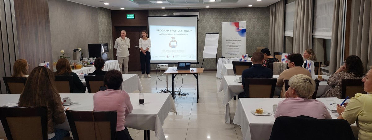 Zakończyliśmy cykl pięciu edycji szkoleń w ramach rekomendowanego programu profilaktycznego „Wspólne kroki w cyberświecie”, realizowanego w pięciu miastach województwa kujawsko-pomorskiego: Toruniu, Grudziądzu, Włocławku, Bydgoszczy oraz Inowrocławiu. To wyjątkowe przedsięwzięcie zostało stworzone z myślą o kompleksowym przygotowaniu liderów do prowadzenia zajęć z dziećmi na temat bezpiecznego i świadomego korzystania z Internetu.