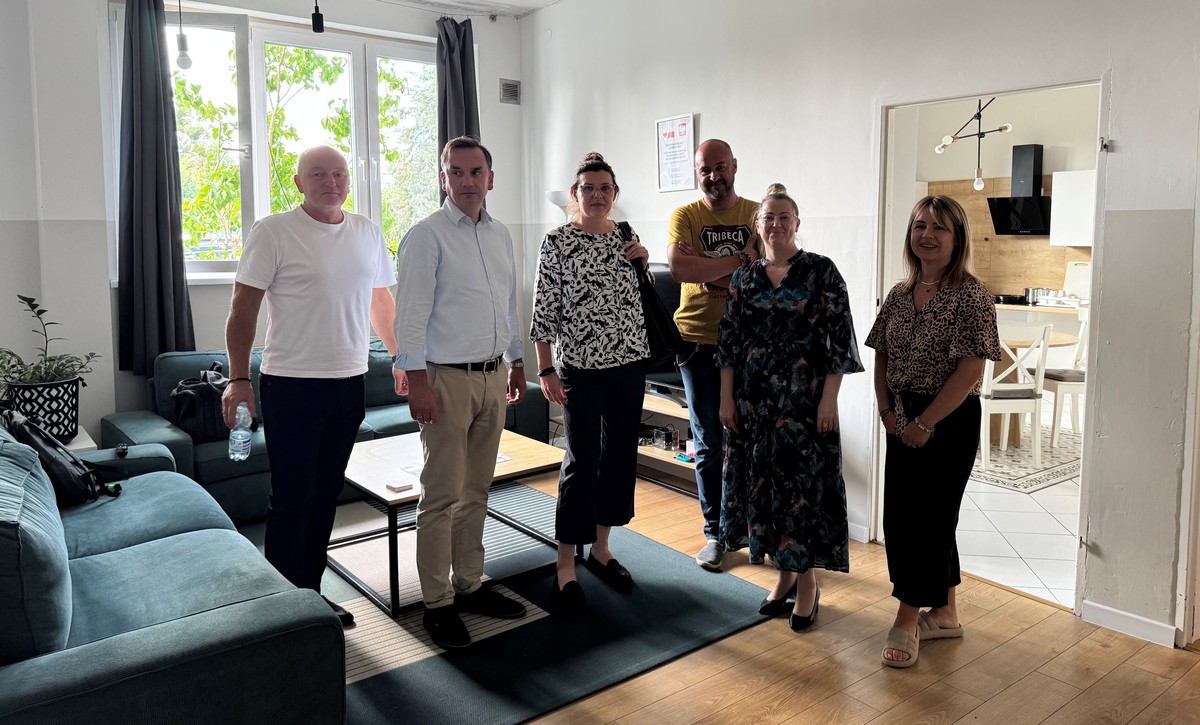 Gospodarze z Fundacji „Arkadia” oprowadzili uczestników po swojej siedzibie, prezentując zakres realizowanych projektów i działań wspierających osoby z niepełnosprawnościami.