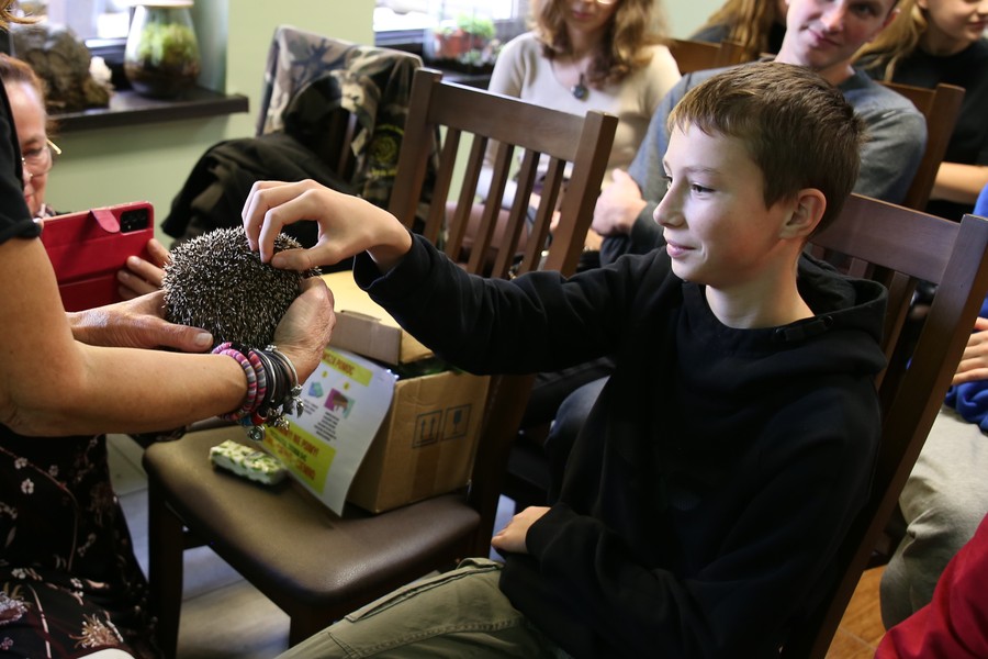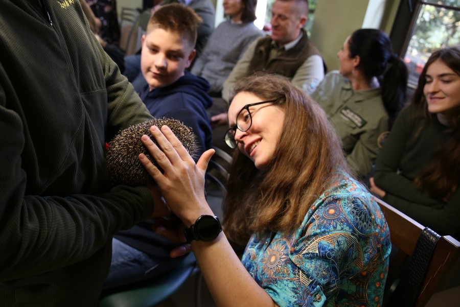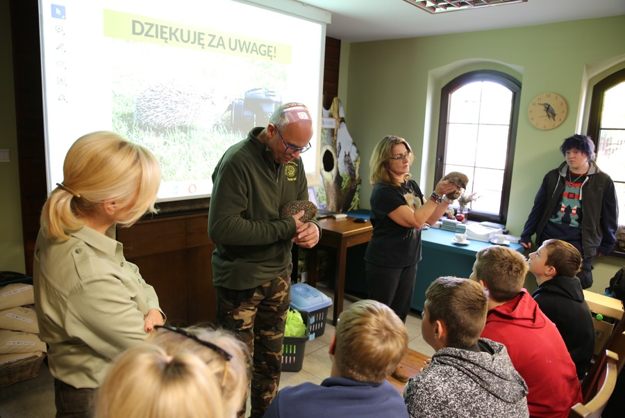 Jeż to dzikie zwierzę, które unika głębokich terenów leśnych i żyje w bliskim sąsiedztwie człowieka, w ogrodach i sadach. Jest sprzymierzeńcem człowieka, zjadając niepożądane w ogrodzie chrząszcze, pędraki, gąsienice czy ślimaki. Jest gatunkiem pod ochroną w Polsce. Obaliliśmy też mit, który pokutuje od średniowiecza, że przysmakiem jeży są jabłka. Uczestnicy spotkania poznali jego przyzwyczajenia i nawyki. W bliskim spotkaniu z jeżem zachodnim „Tucholką” i jeżem wschodnim „Nocnym” nauczyli się rozpoznawać gatunki jeży żyjące w Polsce. Dzicy bohaterowie spotkania to jeże, które zostały zrehabilitowane w ośrodku w Solcu Kujawskim i powrócą do środowiska naturalnego. „Tucholka” to rekonwalescentka z Tucholi.