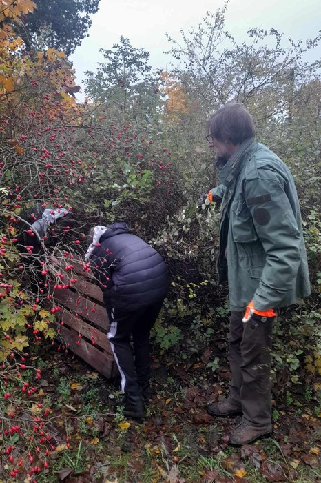 W kolejnych dniach uczniowie szkół podstawowych, którzy zdobyli wiedzę nt. jeży podczas warsztatów, zakładali bezpieczne strefy dla tych zwierząt w parkach miejskich, pod okiem pracowników Tucholskiego Parku Krajobrazowego i Wydziału Ochrony Środowiska Urzędu Miejskiego w Tucholi. W środę 25 października uczniowie SP nr 1 w Tucholi założyli azyle dla jeży w Parku Zamkowym i w przyszkolnym ogrodzie. W czwartek wyruszyliśmy z uczniami SP nr 2 w Tucholi do Parku Ewangelickiego, gdzie też zakamuflowaliśmy schron i europaletę, z których chętnie korzystają kolczaste zwierzaki. Natomiast w piątek uczniowie SP nr 3 w Tucholi stworzyli miejsce bezpieczne dla jeży w parku przy ul. Warszawskiej. Po pracy w terenie zaprosiliśmy młodzież z opiekunami do siedziby parku na ciepłą herbatę i drożdżówkę ufundowaną przez Urząd Miejski w Tucholi, a Tucholski Park Krajobrazowy nagrodził uczestników kubkiem z sylwetką jeża wschodniego lub zachodniego, które zakupione zostały z dotacji Wojewódzki Fundusz Ochrony Środowiska i Gospodarki Wodnej w Toruniu. Podczas poczęstunku uczniowie wyszli z inicjatywą przygotowania i postawienia tabliczek w parkach z informacją o ochronie jeży.