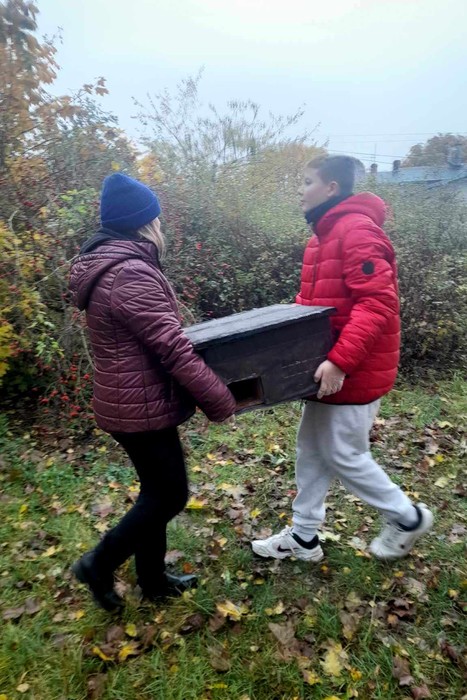 - Uczniowie SP nr 3 w Tucholi kamuflują schrony dla jeży, fot. D.Borzyszkowska